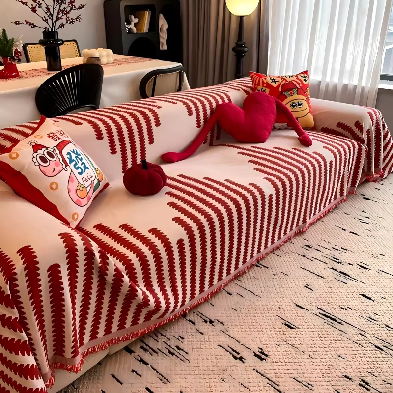 新年沙发盖布盖巾2025红色沙发巾防猫抓整张全盖安可拉红沙发套罩
