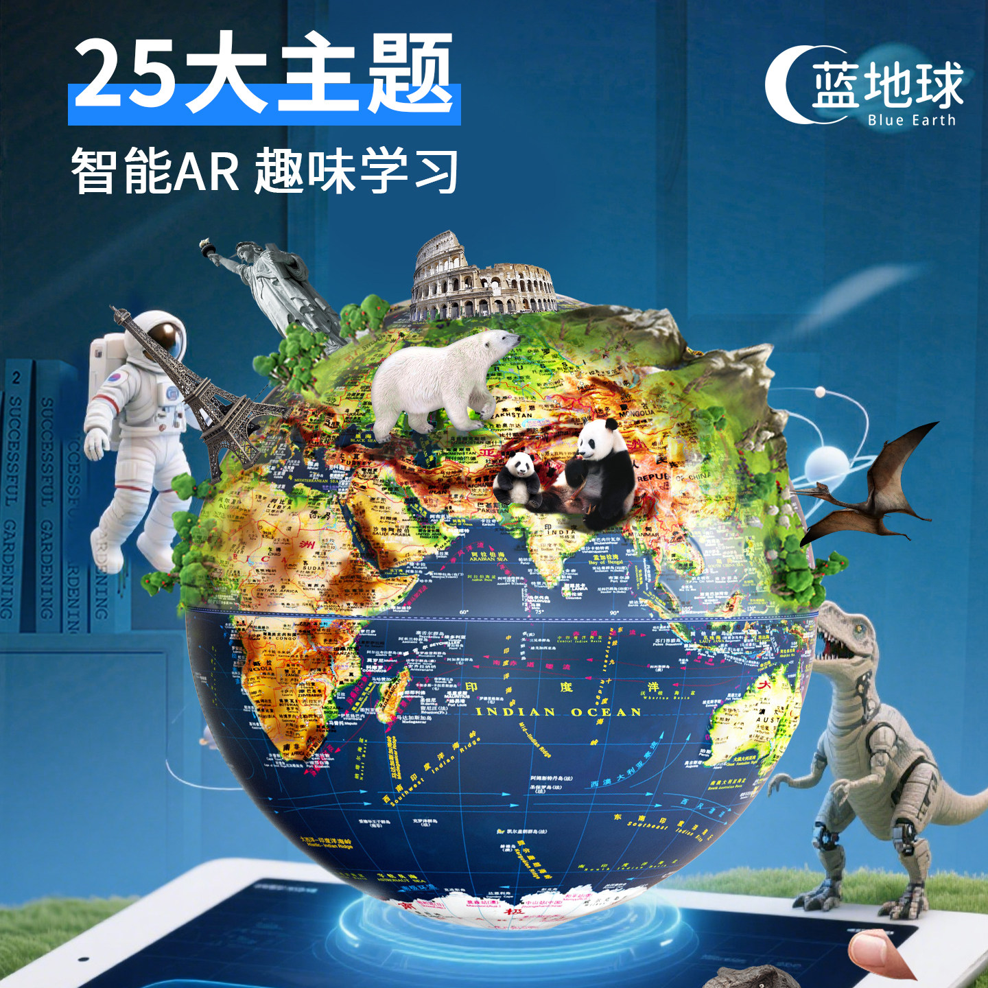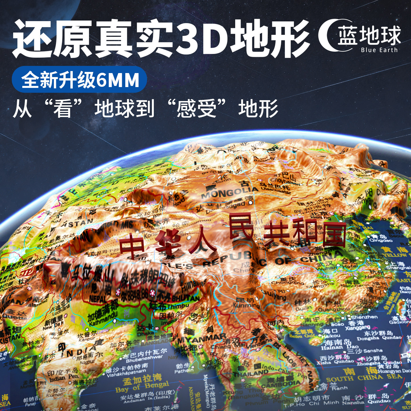 地球仪3d立体悬浮雕正版学生用初中生专用小学生儿童启蒙送男孩新年生日礼物女大号摆件轻奢高档凹凸2026新款