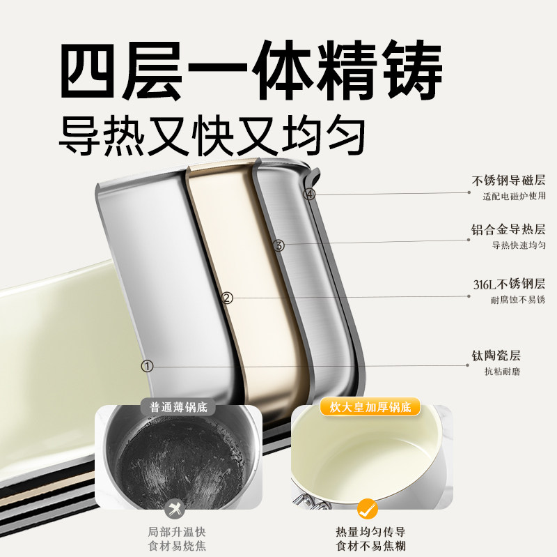 炊大皇316不锈钢钛陶瓷锅无特氟龙涂层奶锅宝宝辅食锅蒸锅煮泡面