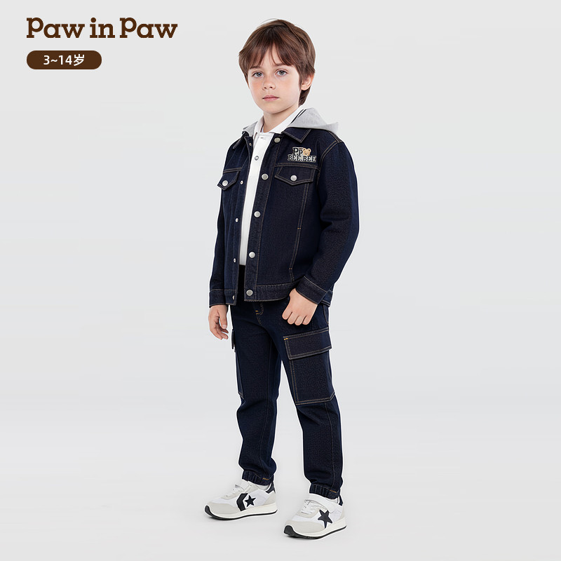【商场同款】PawinPaw卡通小熊童装26年春季新款男童连帽牛仔外套