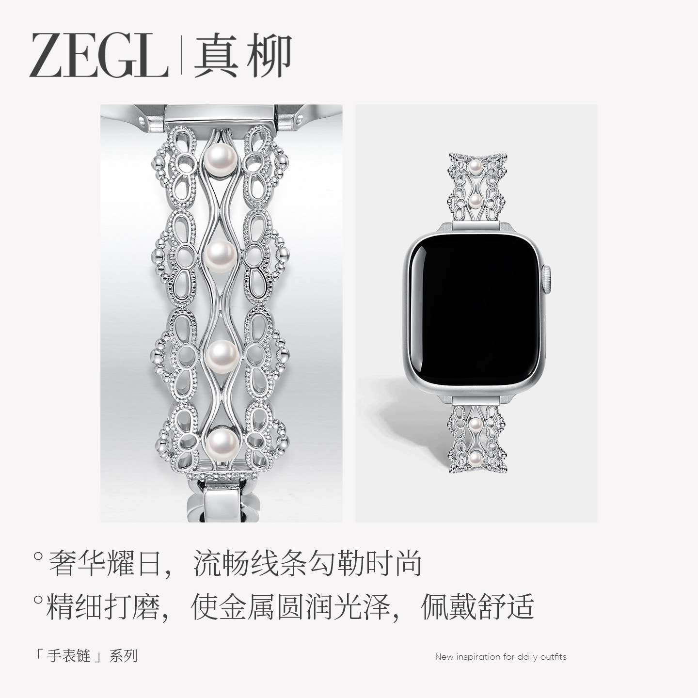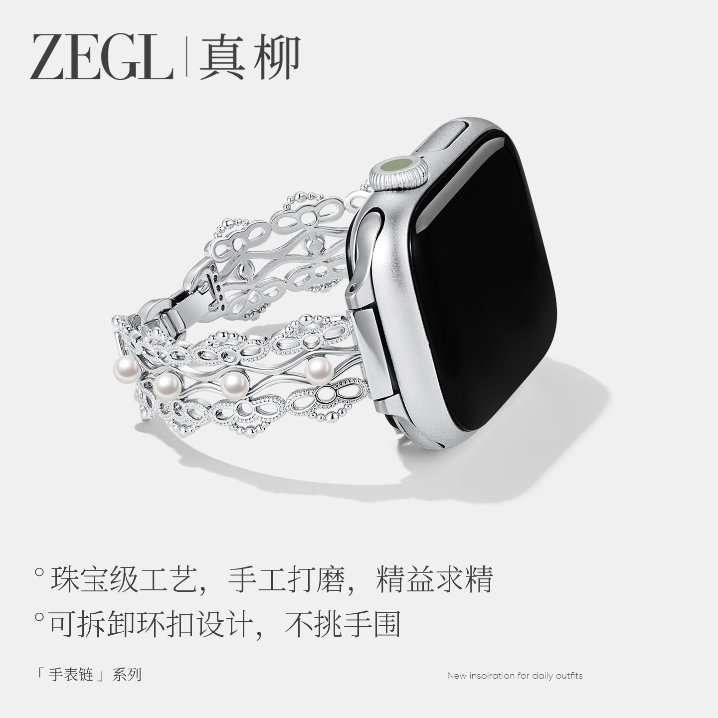 ZEGL设计师适用applewatchS11苹果手表表带春夏人造珍珠蕾丝iwatch手表链手链女轻奢小众精致手表带手环腕带