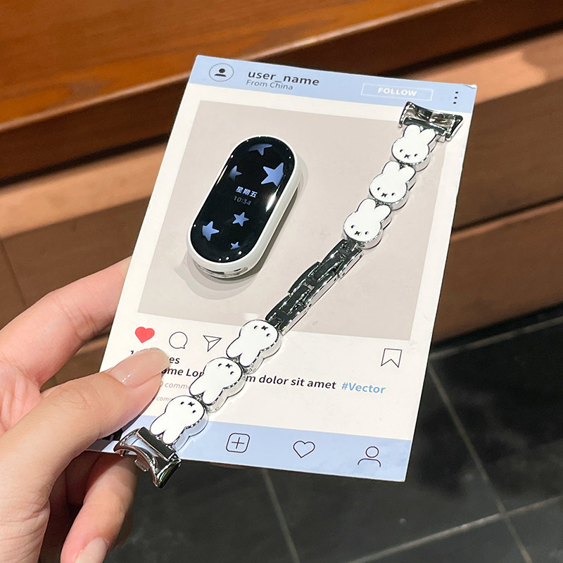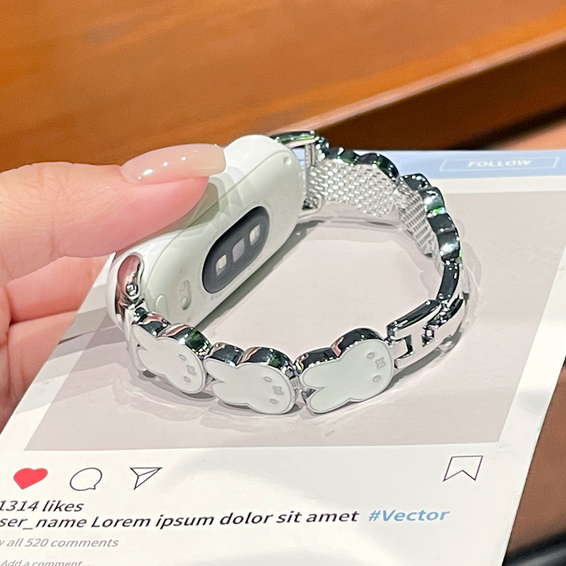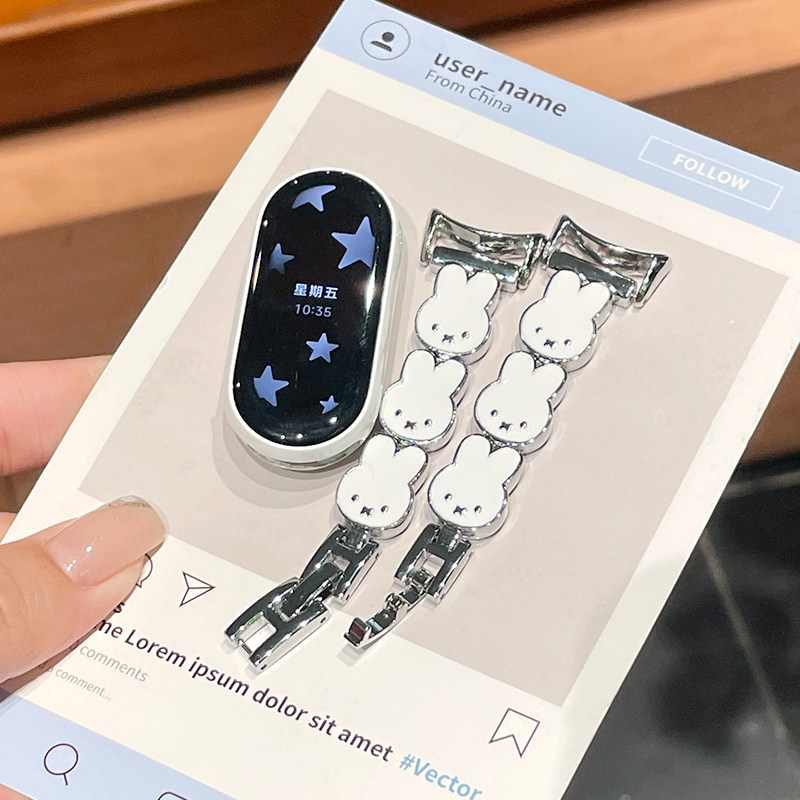 米菲兔子适用苹果11小米手环10表带金属可爱9pro腕带876华为fit43
