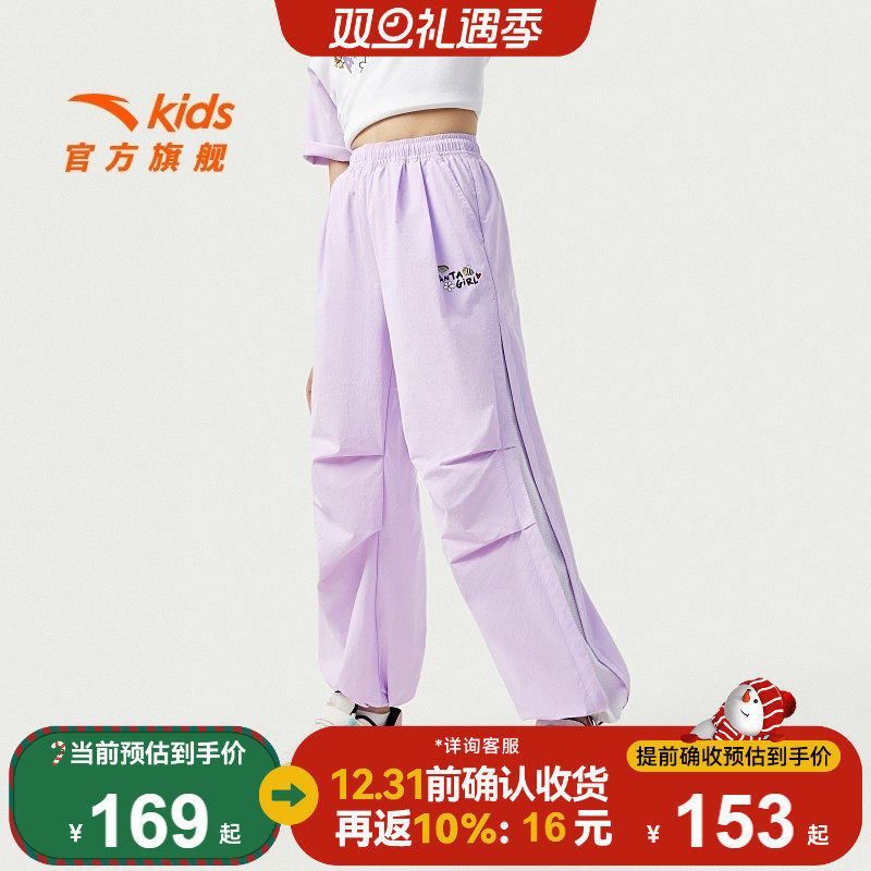 安踏儿童女大童运动长裤2025夏季新款透气亲肤中大童直筒休闲裤子
