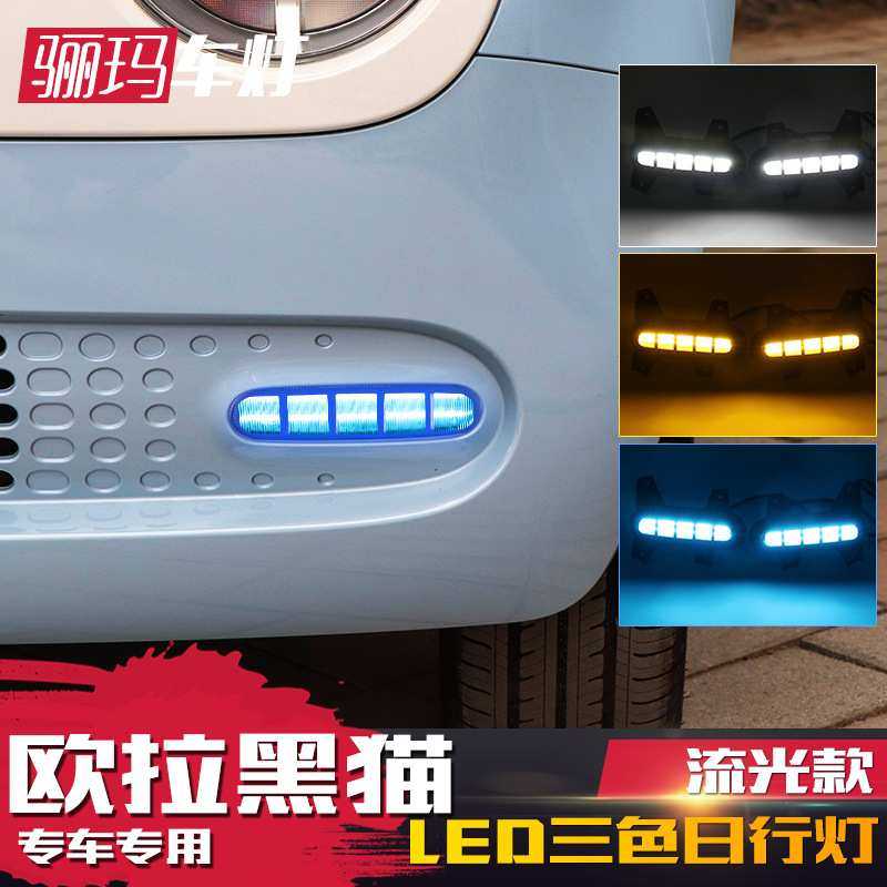 适用于欧拉黑猫日行灯 黑猫改装LED日间行车灯专用前雾灯流光转向