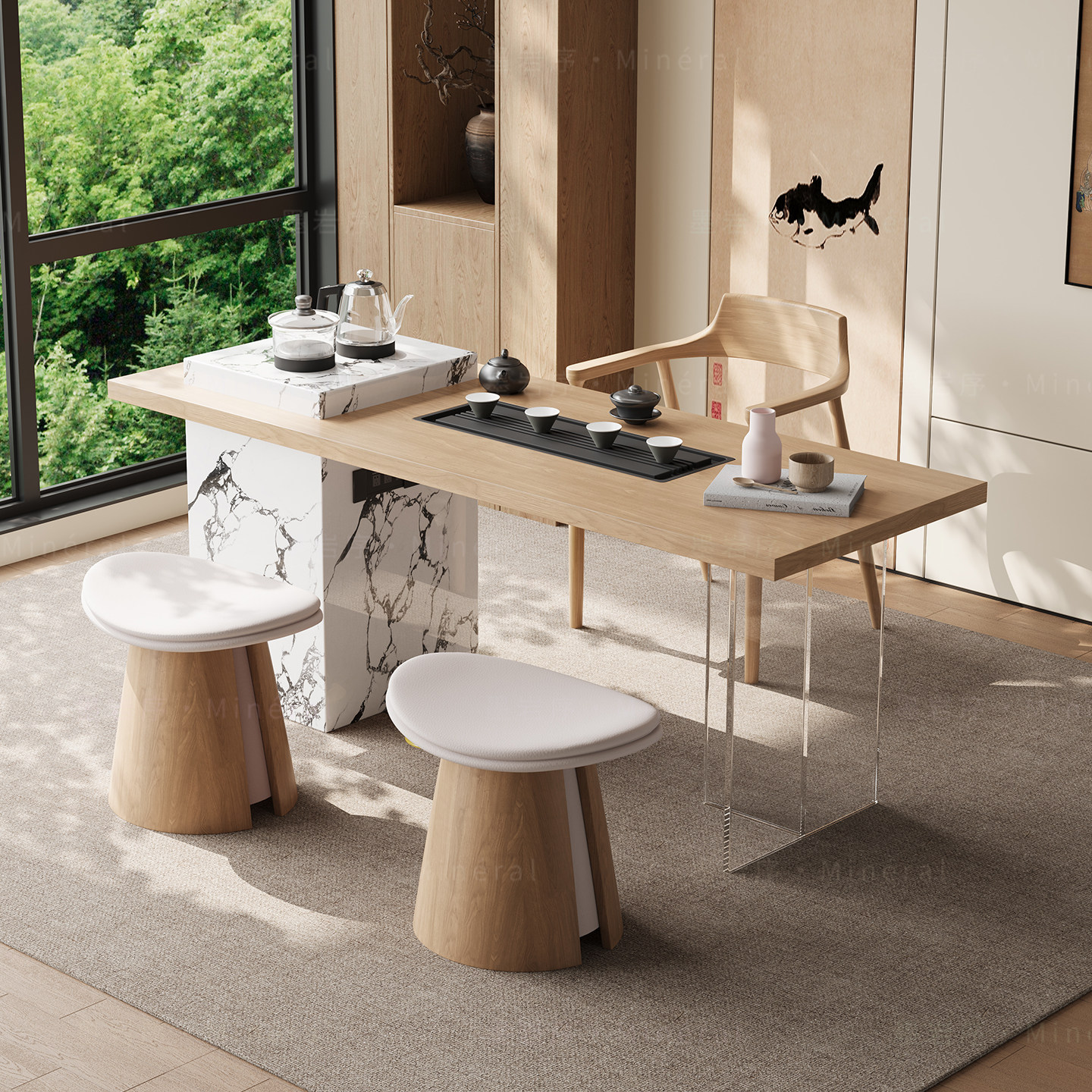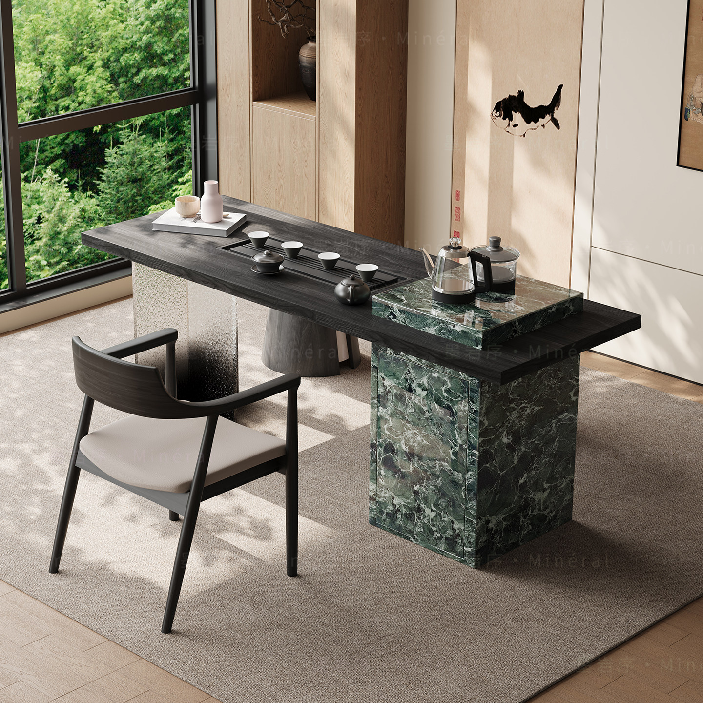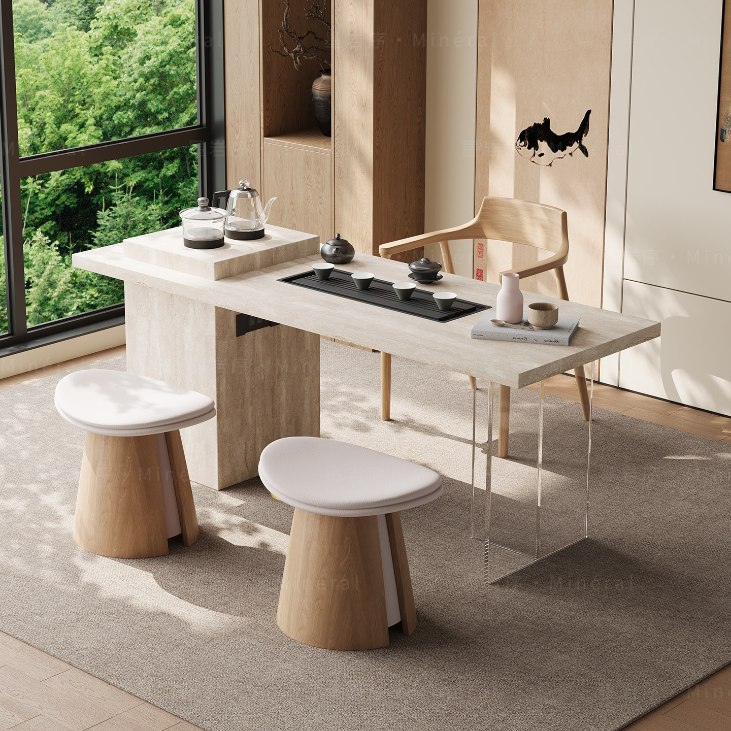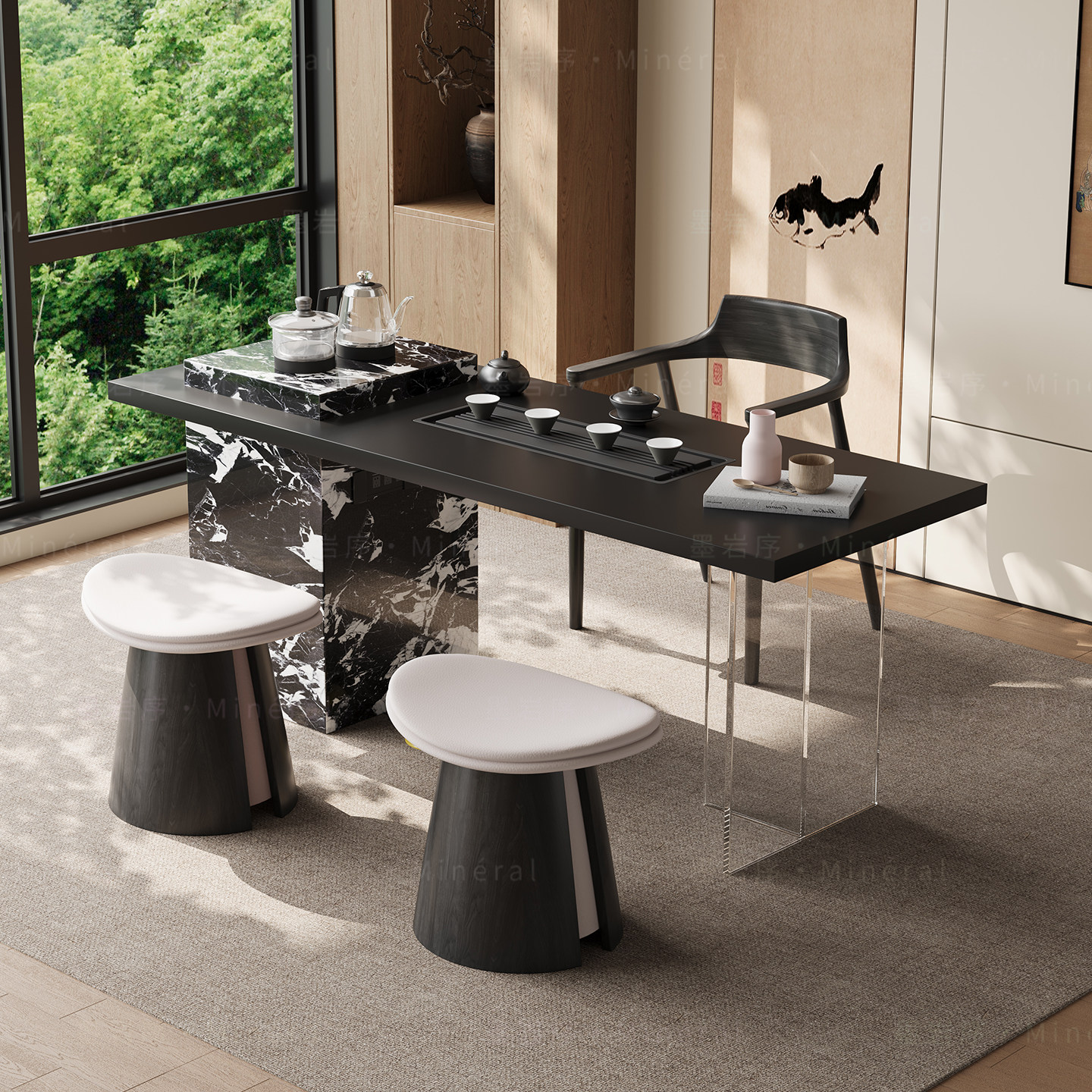 意式茶桌家用小茶台轻奢极简客厅小型高级感泡茶桌岩板阳台茶桌椅