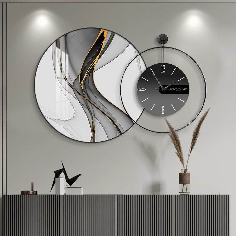 抽象艺术餐厅油画装饰画现代简约餐桌墙面挂画时尚客厅时钟壁画