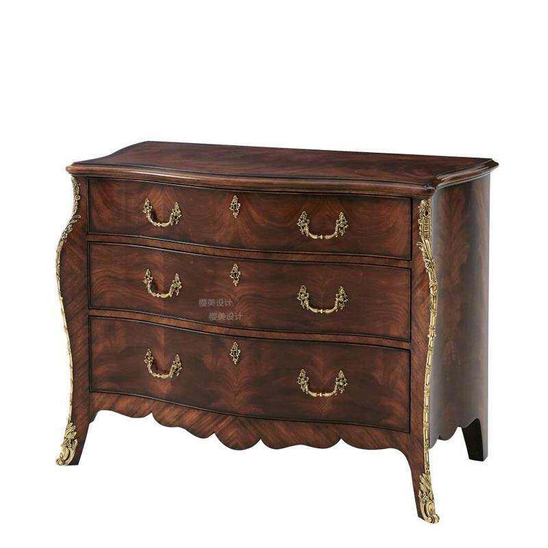 英式新古典桃花心木斗柜亚历山大铜件样板房装饰柜别墅雕花玄关柜