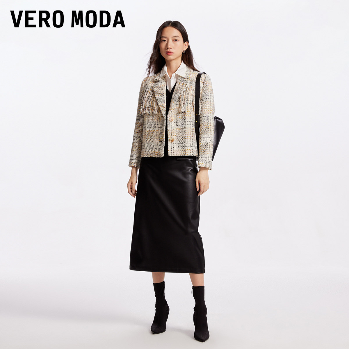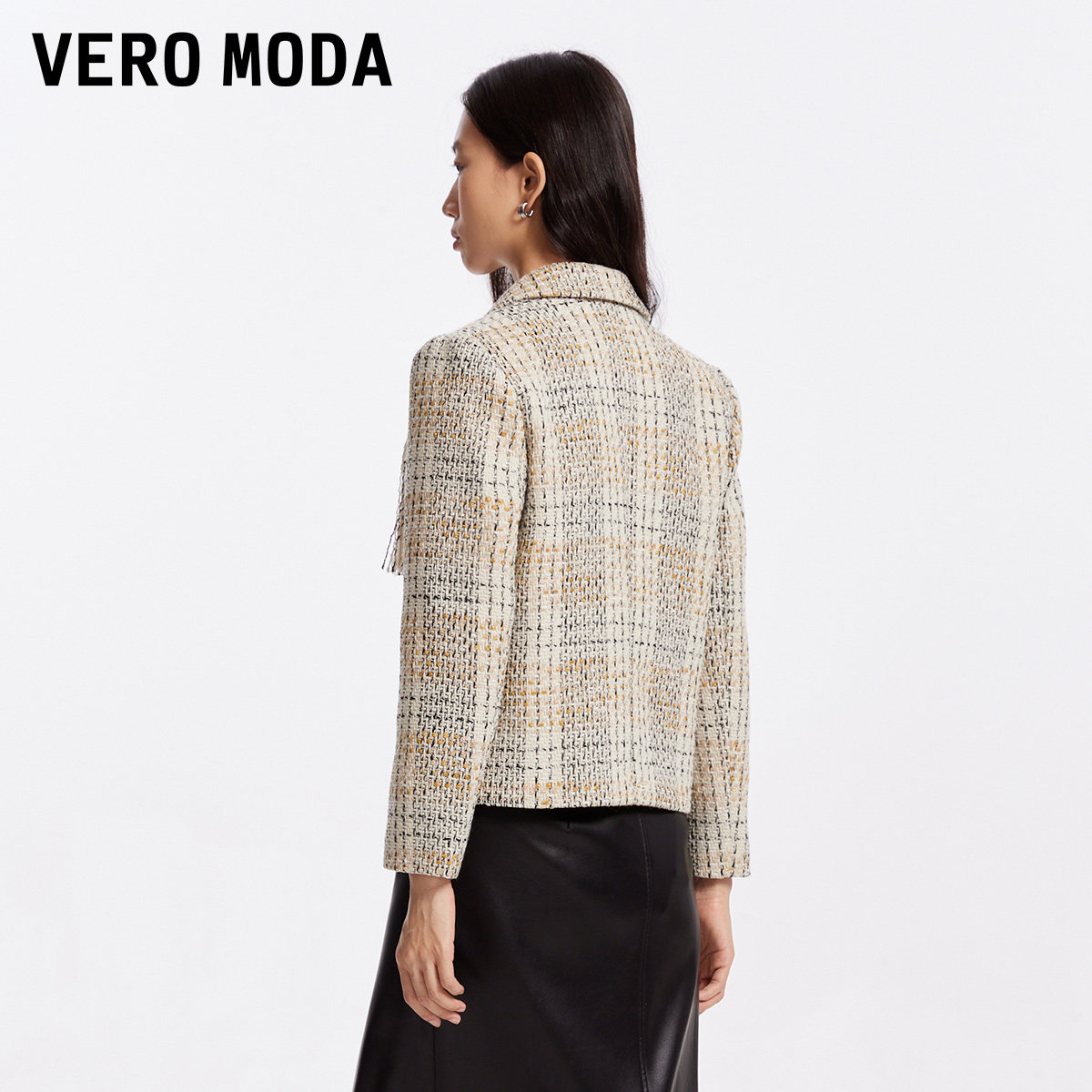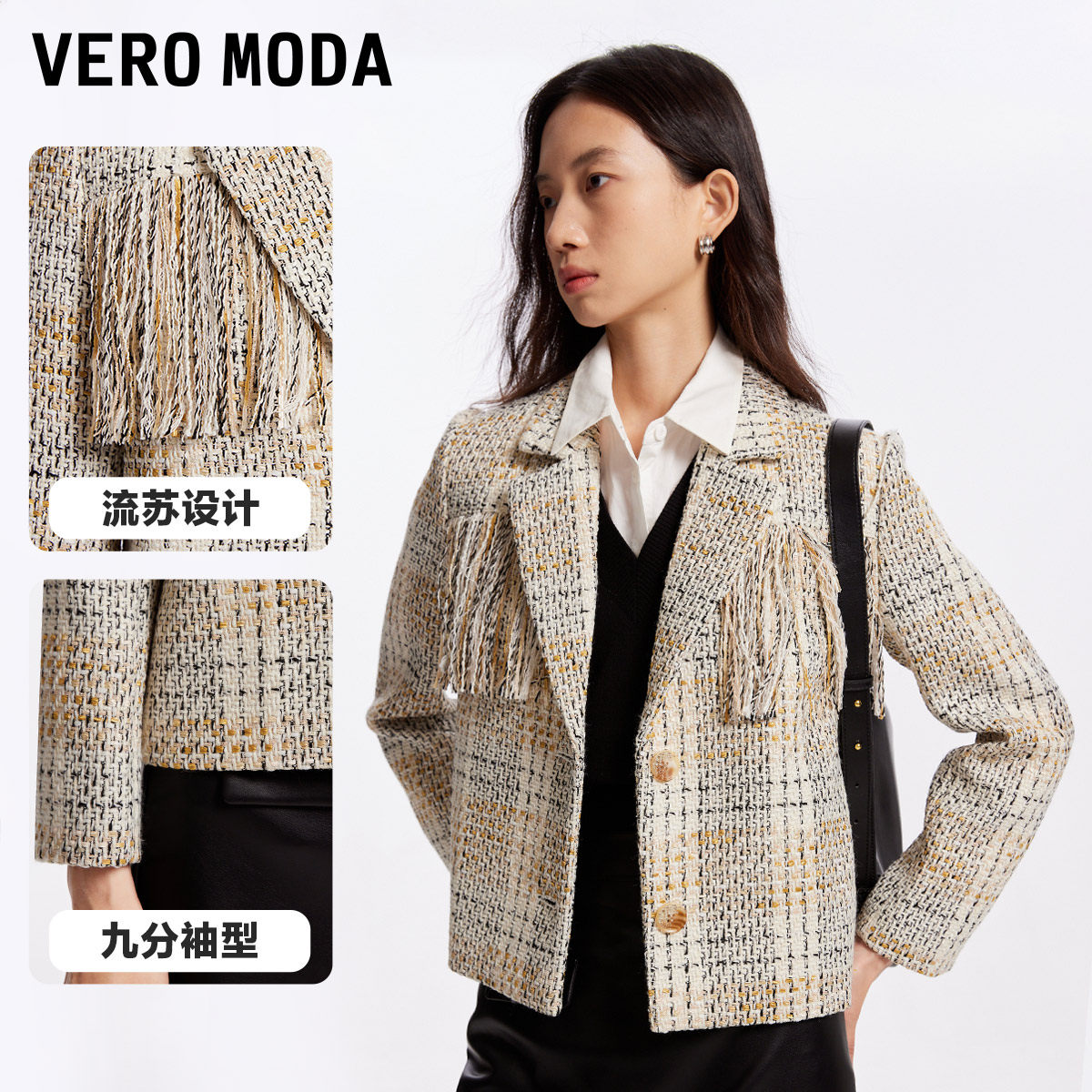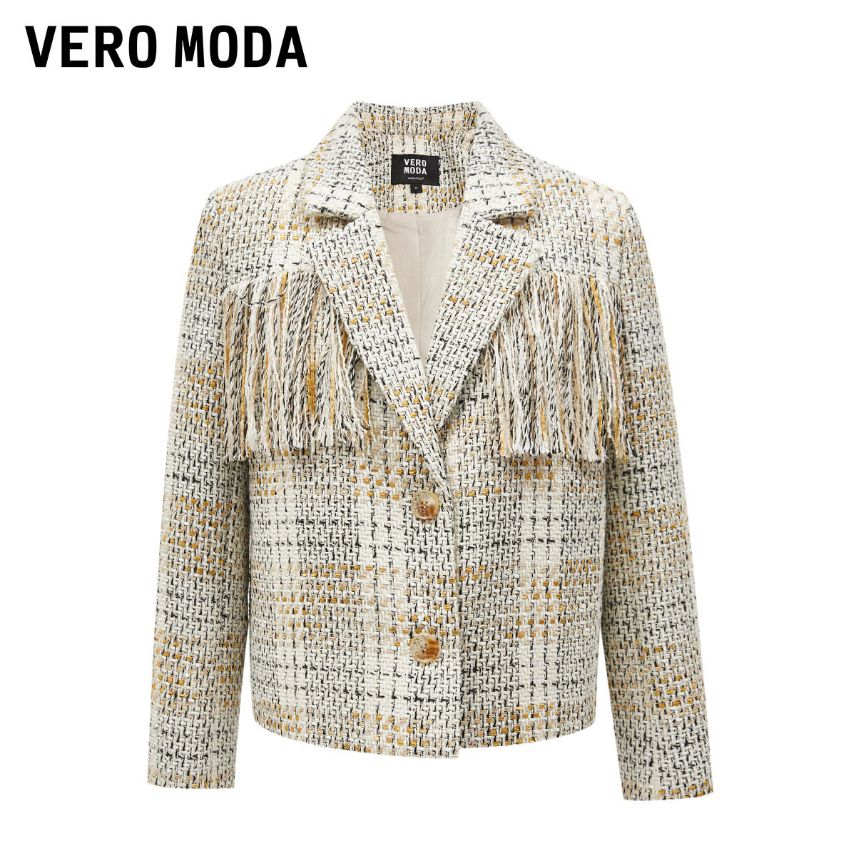 Vero Moda奥莱西装外套女秋冬清仓优雅气质粗花呢流苏短款百搭