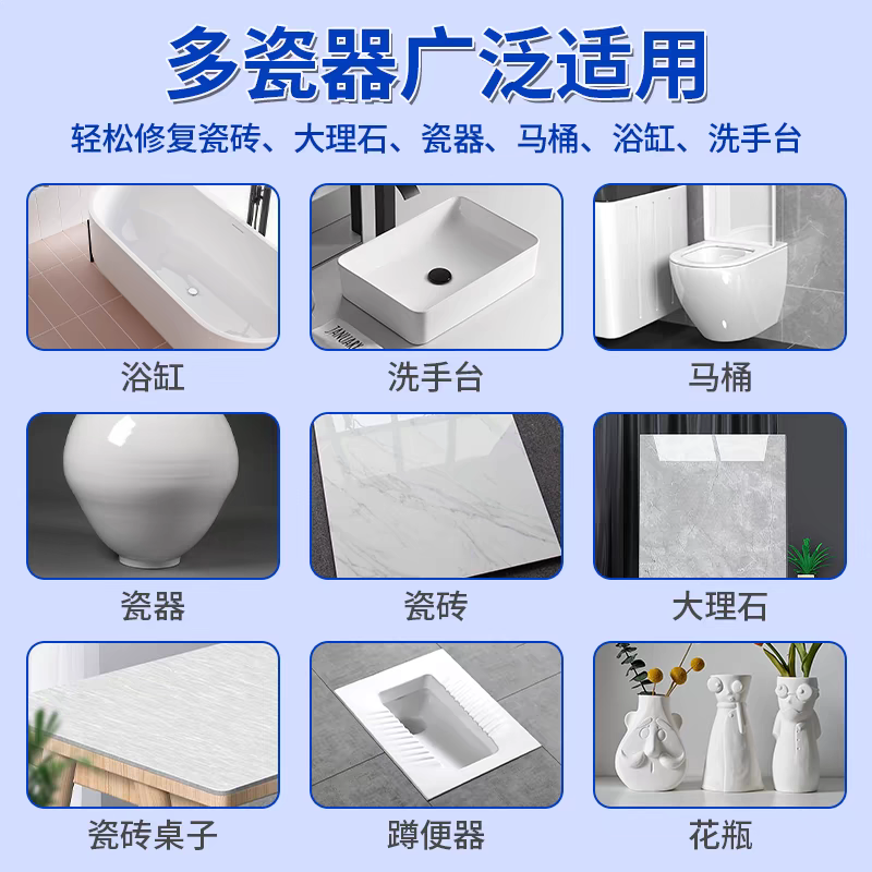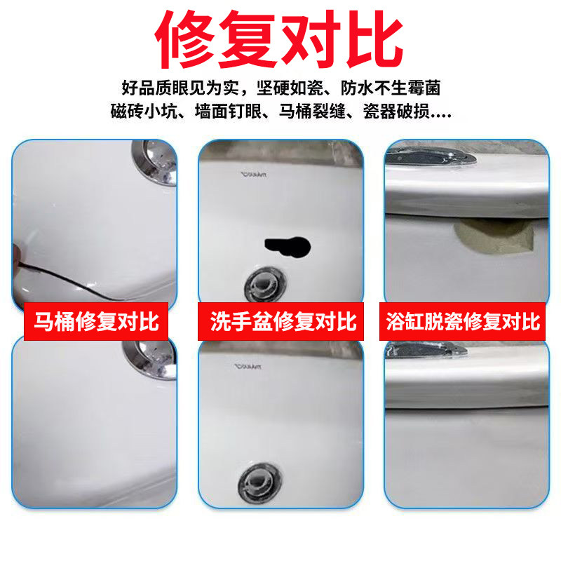 环保型陶瓷胶瓷砖胶洗脸洗手盆裂纹裂缝修补剂无痕釉面修复陶瓷膏坑洞填充马桶浴缸瓷器地砖凹坑大理石修补胶