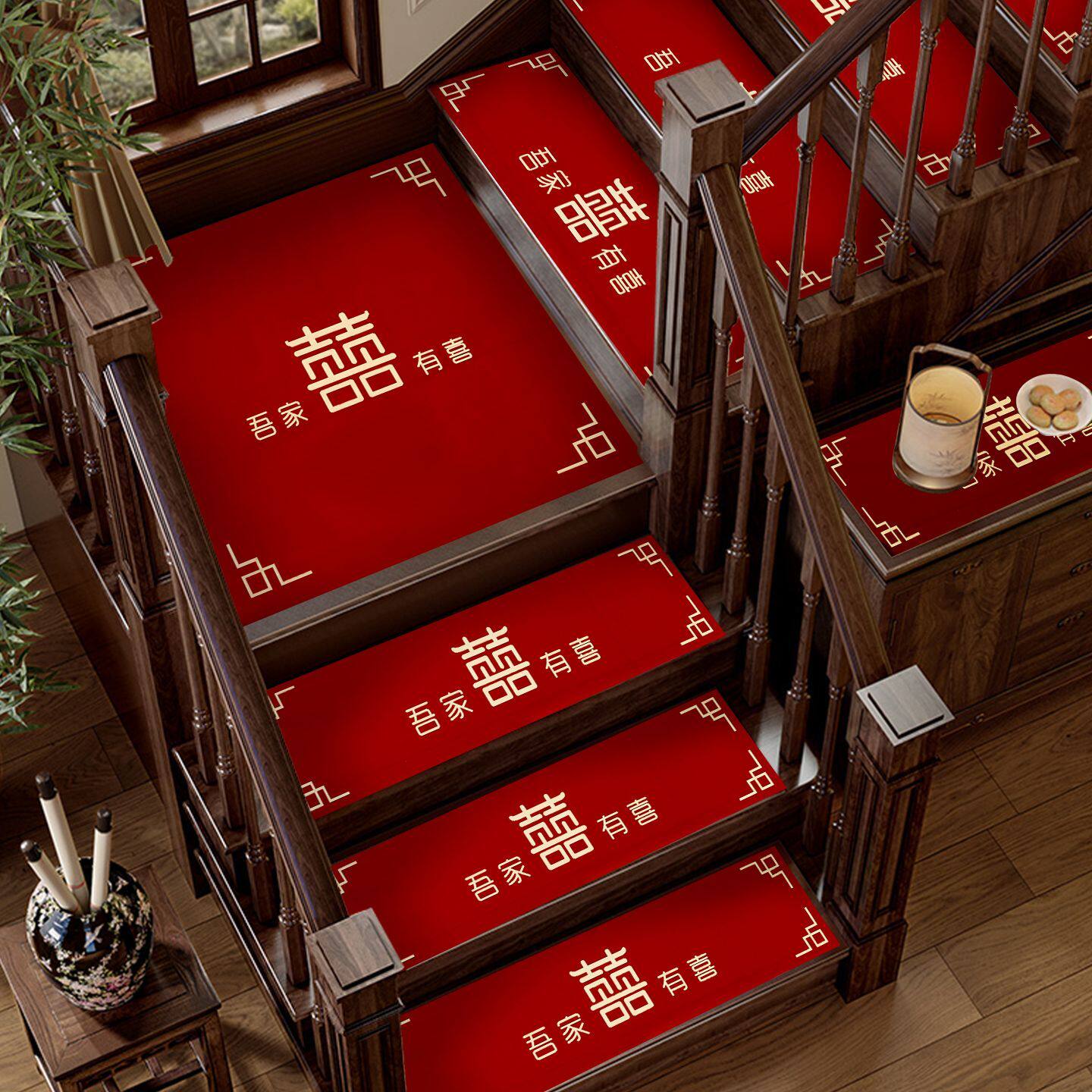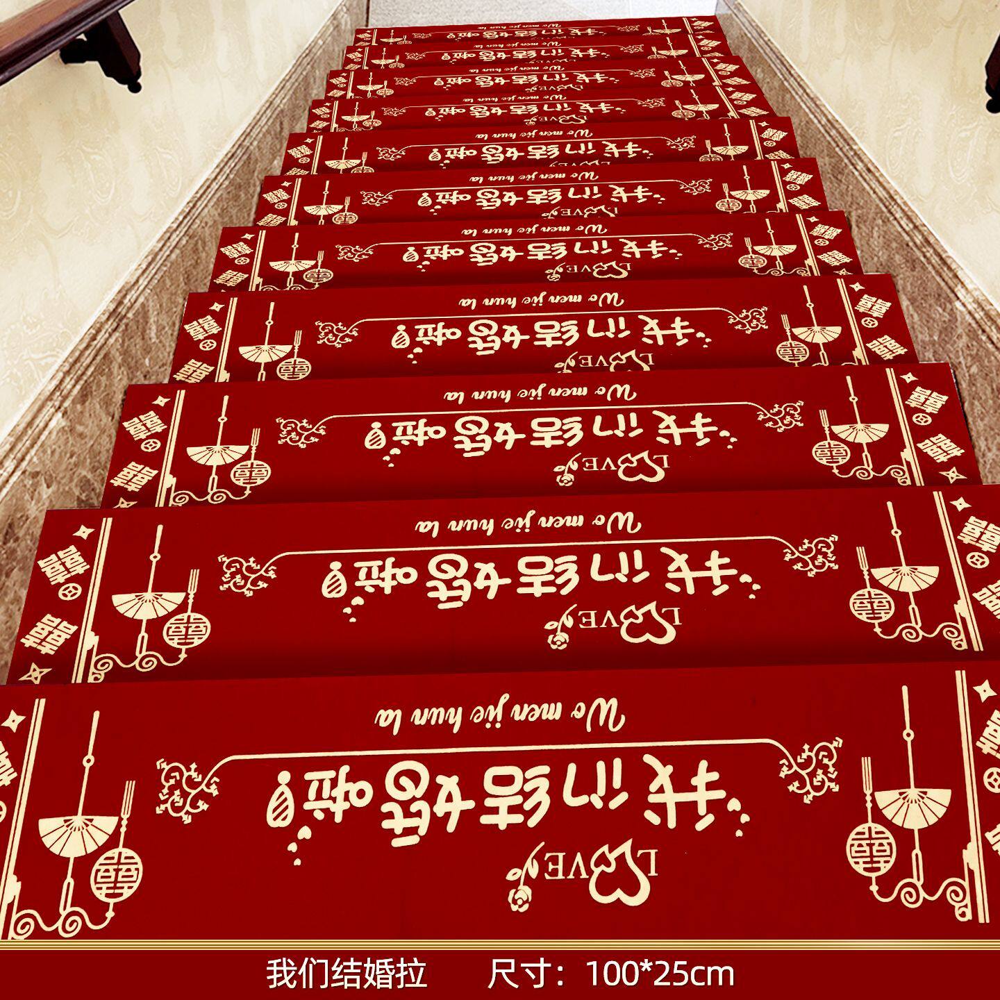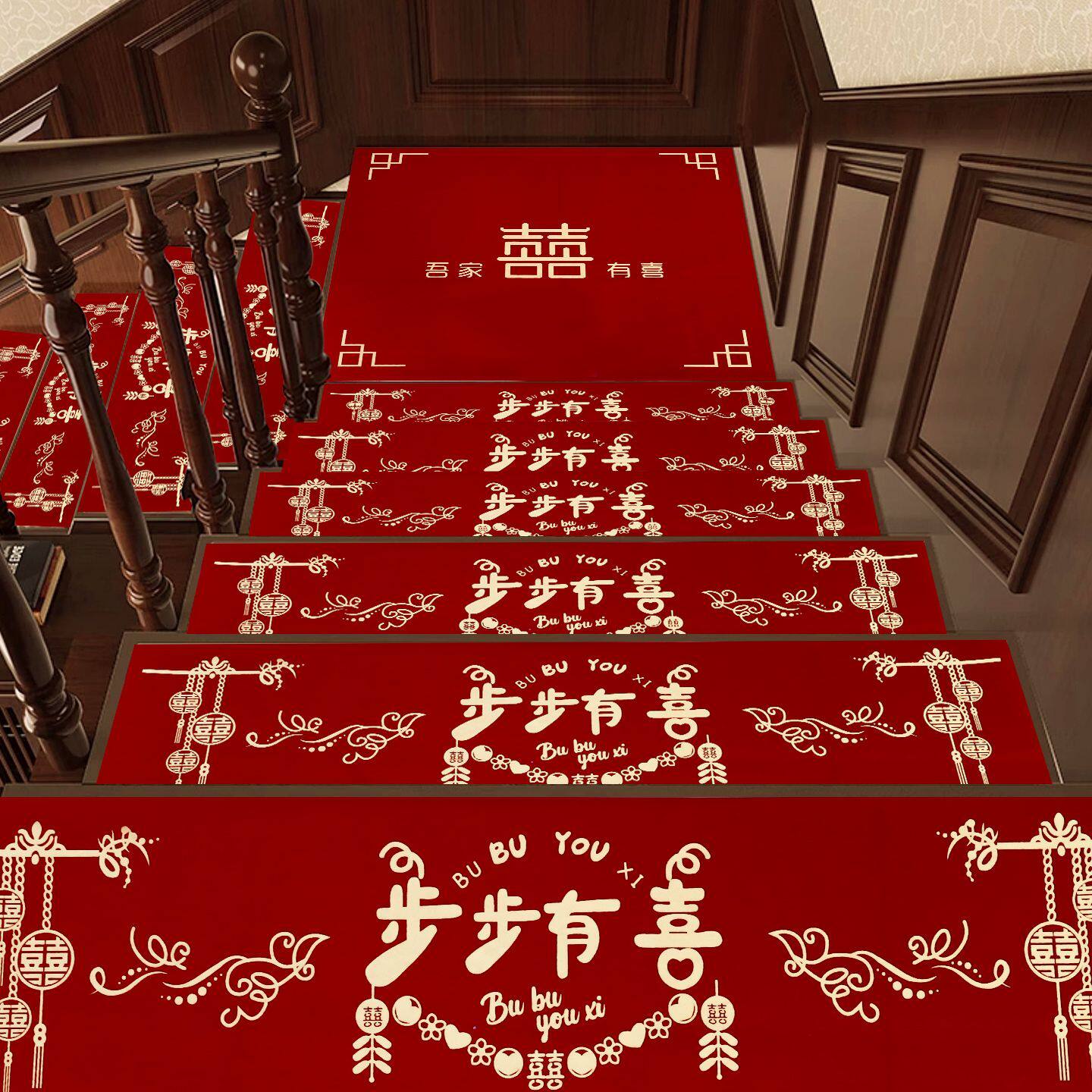 结婚楼梯踏步贴装饰男方婚礼扶手台阶喜字贴婚庆地垫婚房布置地毯