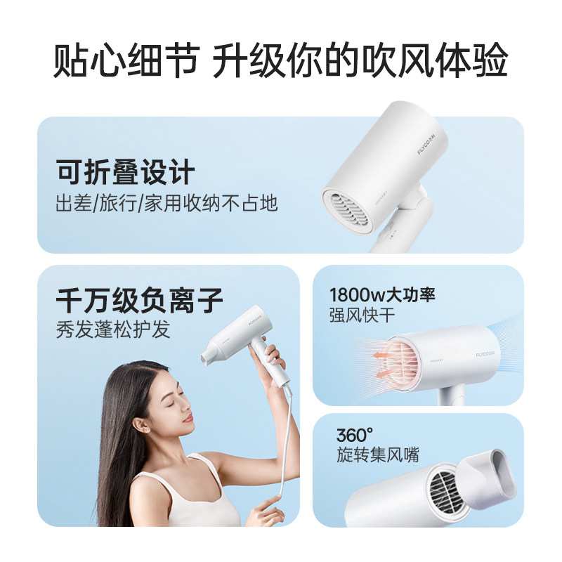 飞科吹风机家用大风力负离子护发可便携折叠速干风筒宿舍用学生