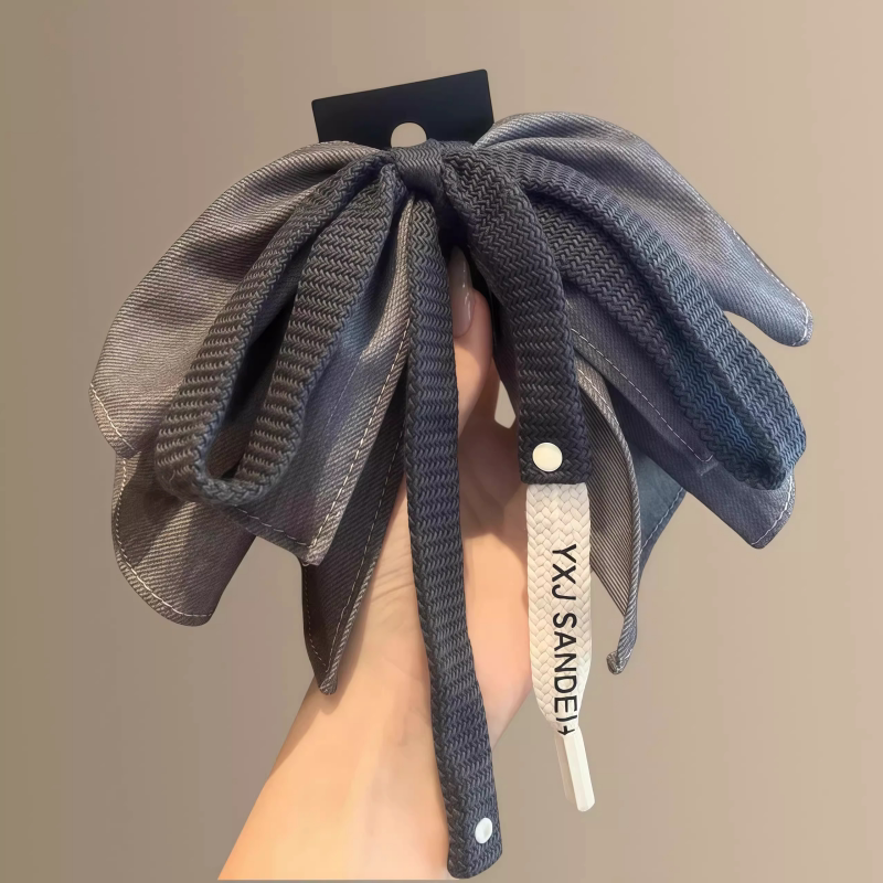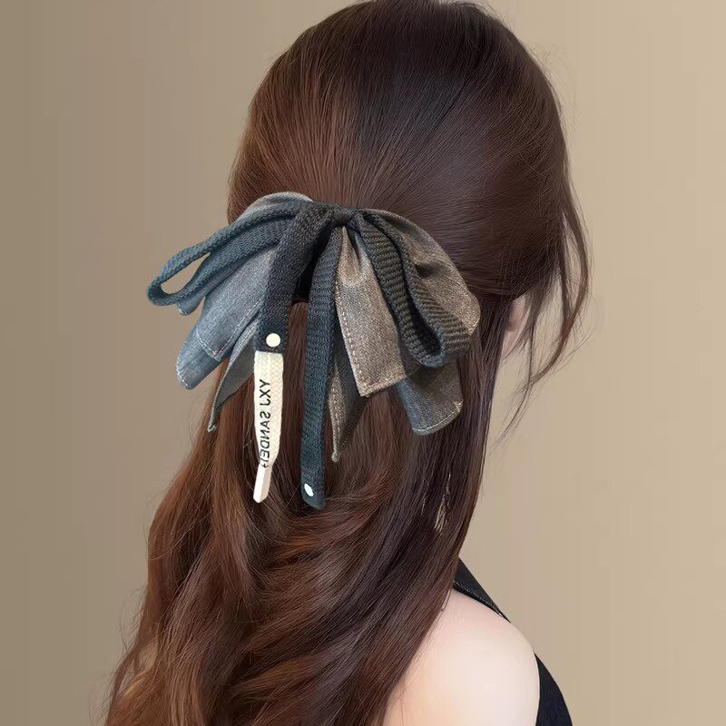 韩国洋气牛仔灰高马尾蝴蝶结抓夹发夹后脑勺高级感网红气质鲨鱼夹