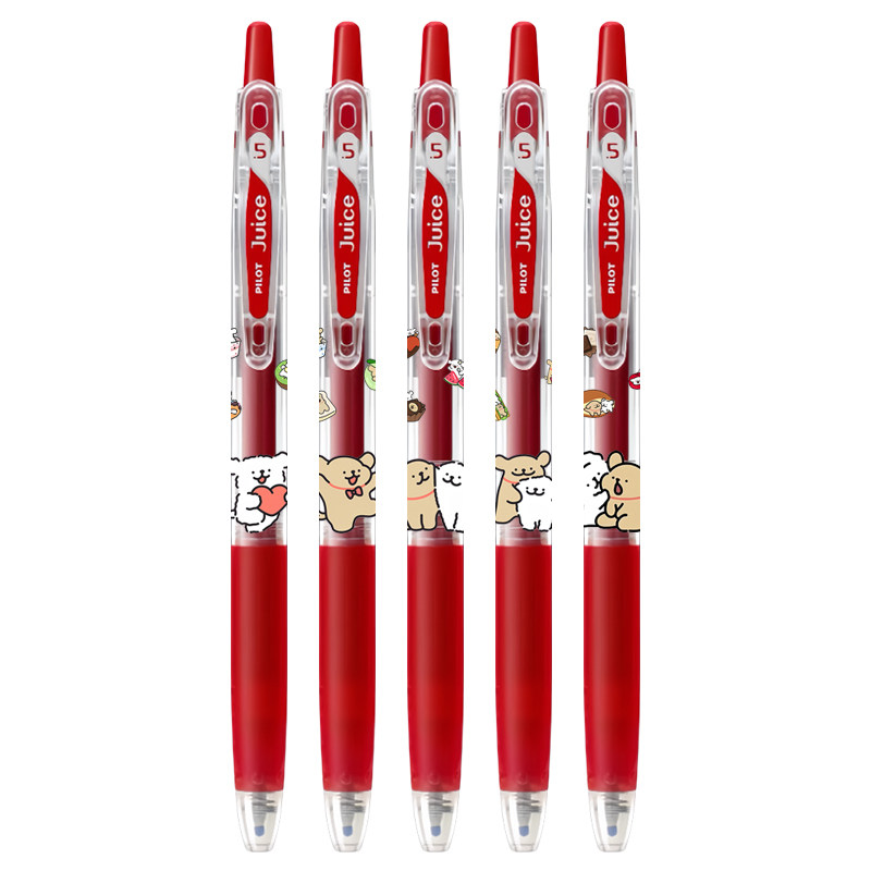日本pilot百乐红笔juice果汁笔线条小狗DIY限定红色按动中性笔0.5