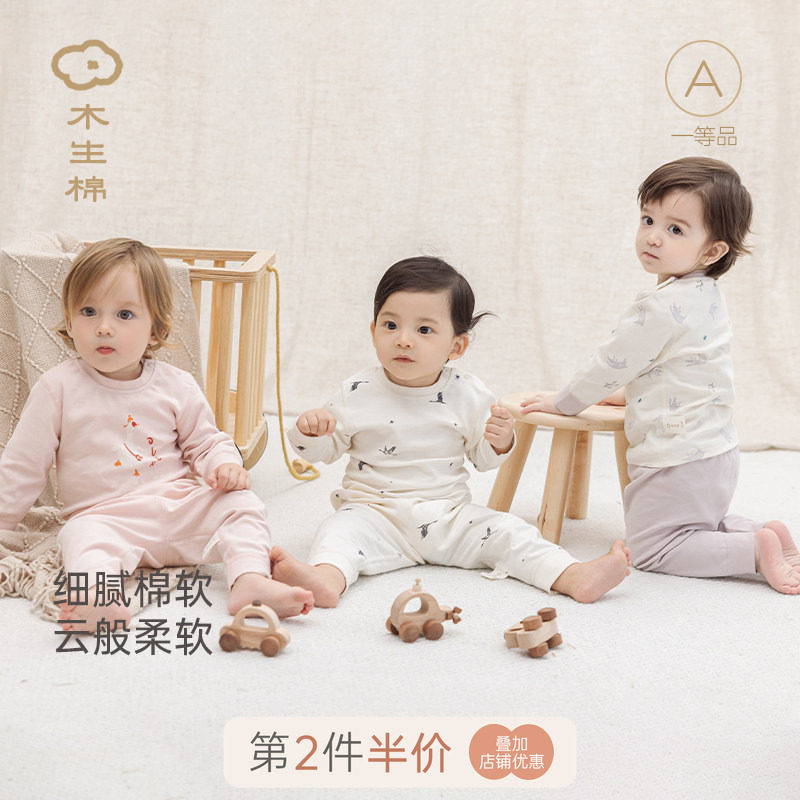 木生棉男女宝宝春秋季内衣套装婴儿纯棉睡衣保暖上衣裤子两件套