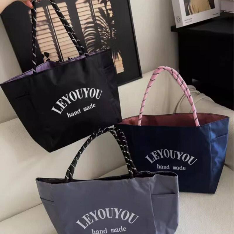 多巴胺防水布手提袋饭盒包2025上班手提包外出妈咪包紫色帆布粉色