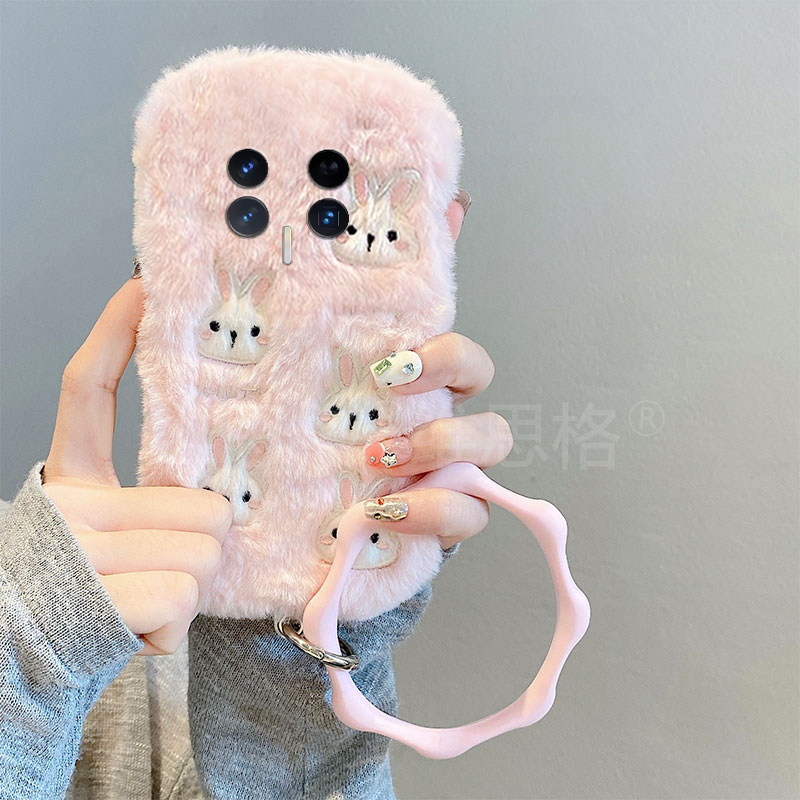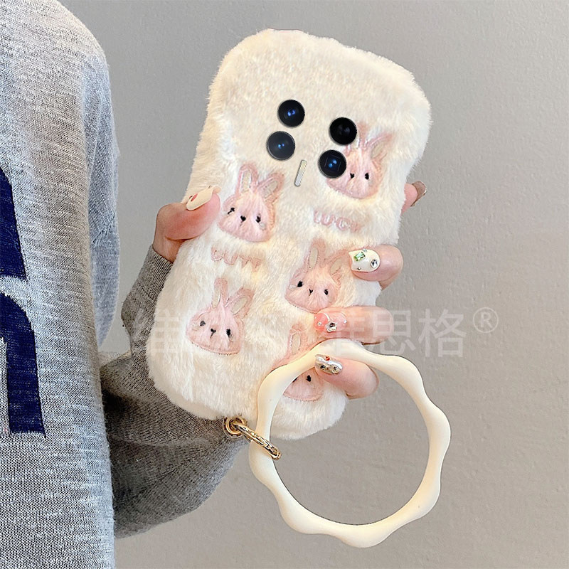 粉色刺绣兔子适用华为荣耀magic8手机壳mgaic7可爱play8tpro毛绒绒7t秋冬季6t手环5t/majic6至尊版/5/honor软