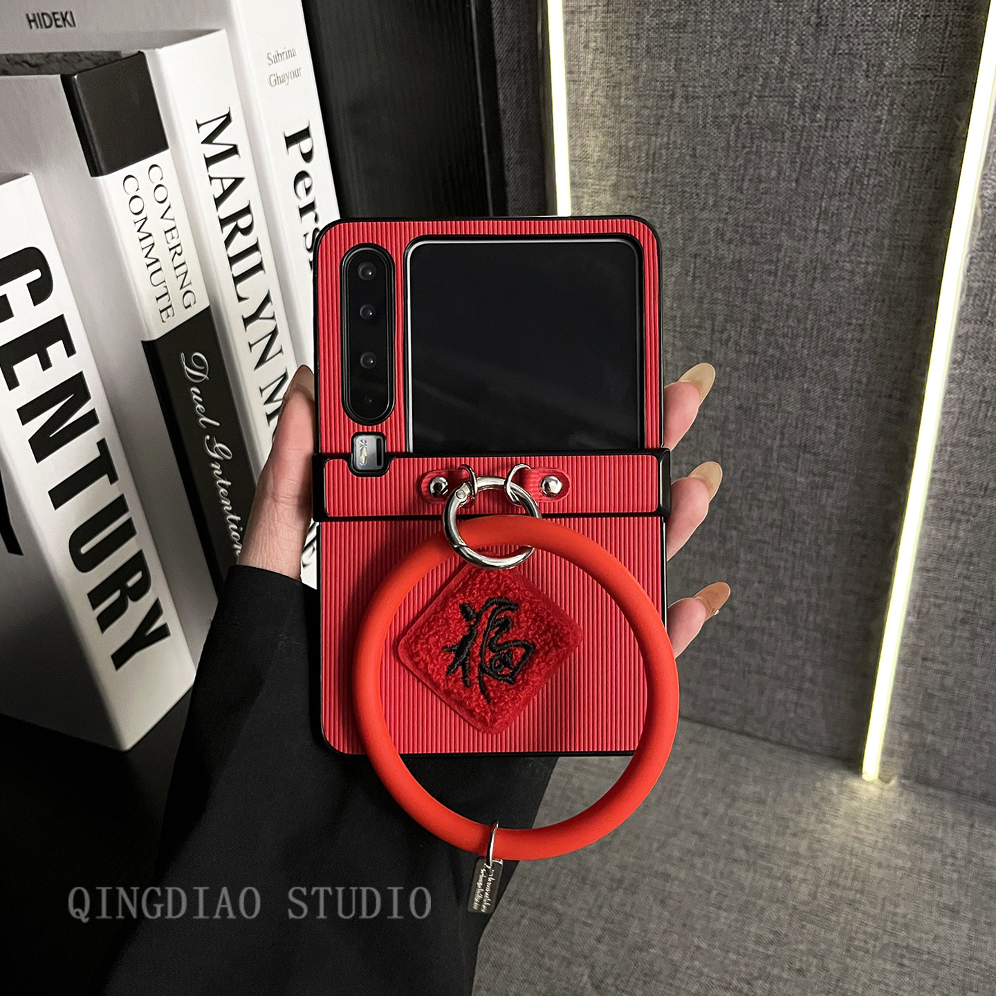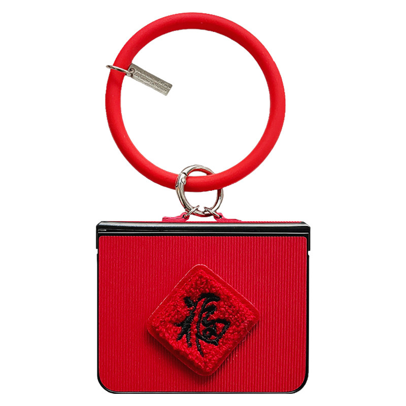 轻调 国潮喜庆红色刺绣福字圆手环适用于华为Pura X手机壳全包新款purax典藏版折叠屏p50宝盒翻盖防摔牙签纹
