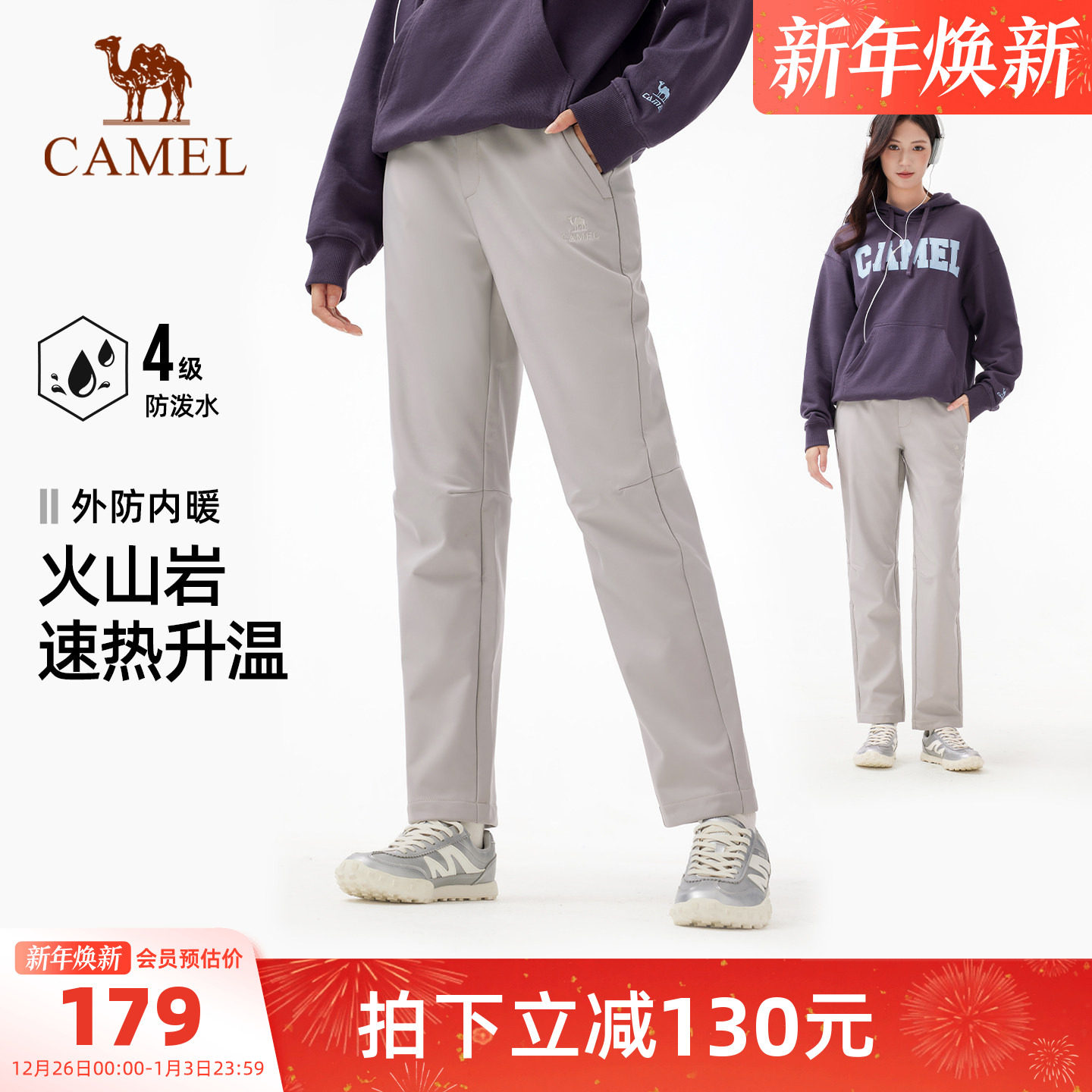 火山岩|骆驼户外软壳裤女加绒保暖防风防水防刮耐磨徒步登山裤男