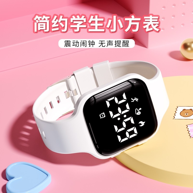 电子手表男初高中学生女无声震动闹钟静音儿童运动只看时间考试环