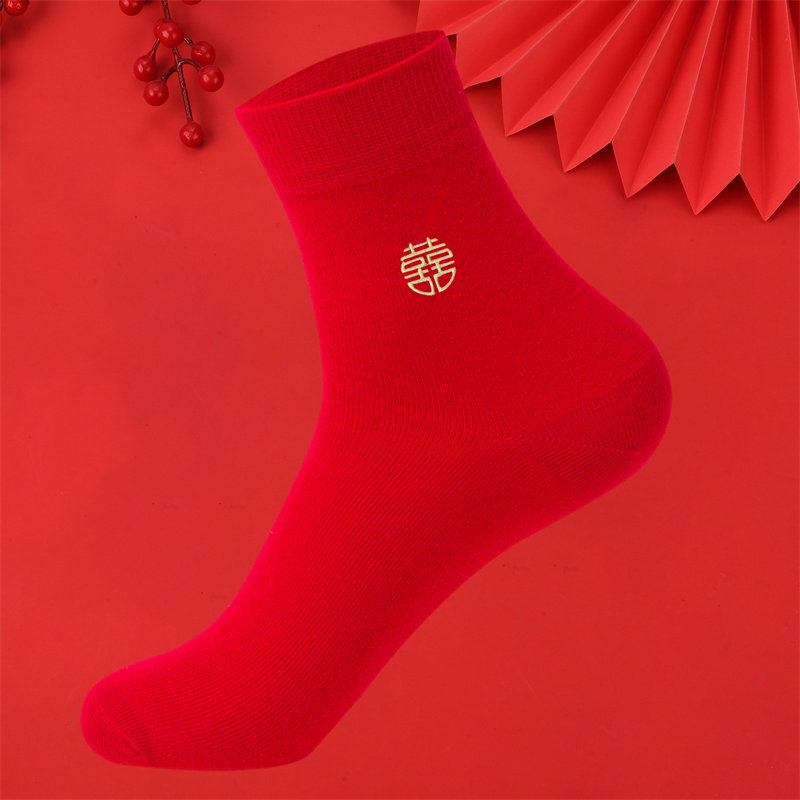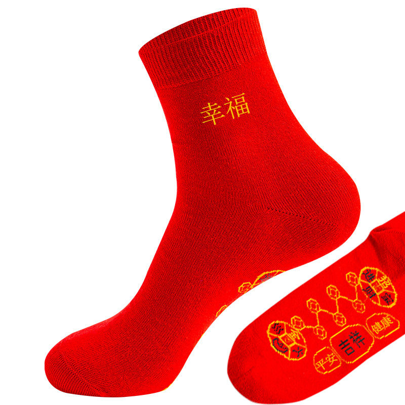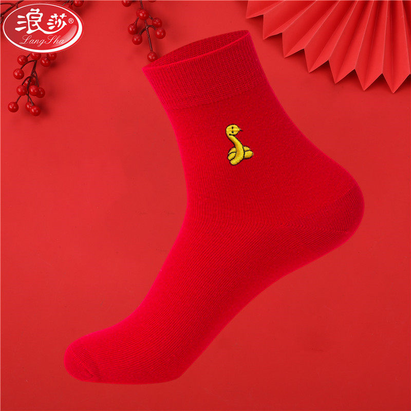 浪莎红色袜子男女士中筒纯棉本命年结婚生肖蛇情侣同款七星连珠袜