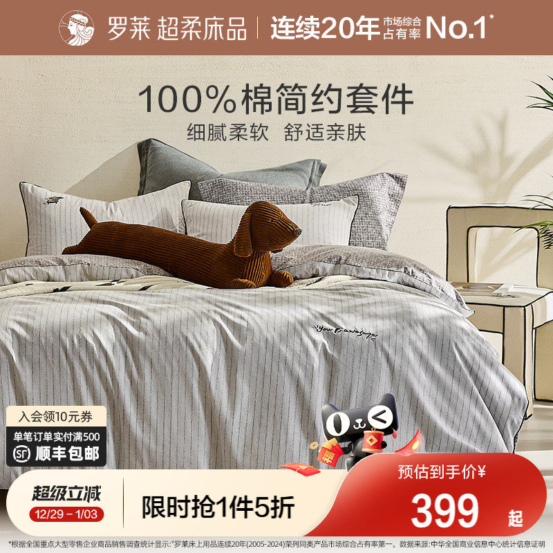 罗莱家纺床上用品全棉被套被罩床单套件学生宿舍100棉三四件套