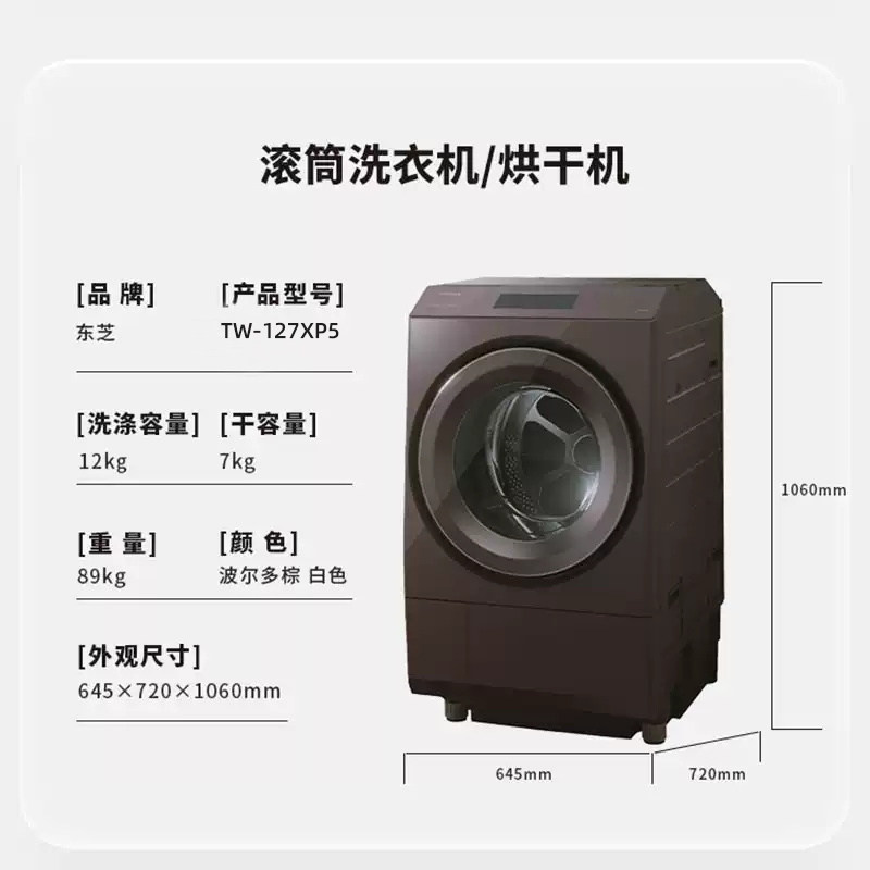 【日本原装进口直邮】东芝TW-127XP5滚筒洗烘一体全自动洗衣机