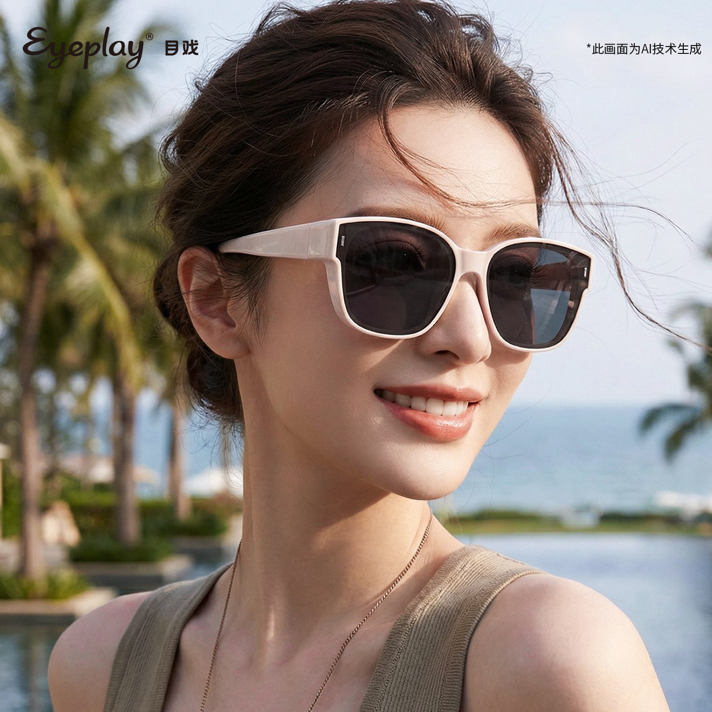 目戏套镜近视太阳镜白框墨镜女士偏光防紫外线男开车眼镜非夹片