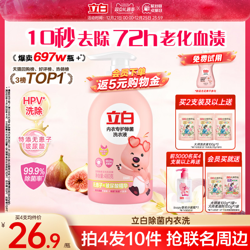 立白内衣洗衣液内裤清洗液女士专用祛除血渍抗菌正品官方旗舰店