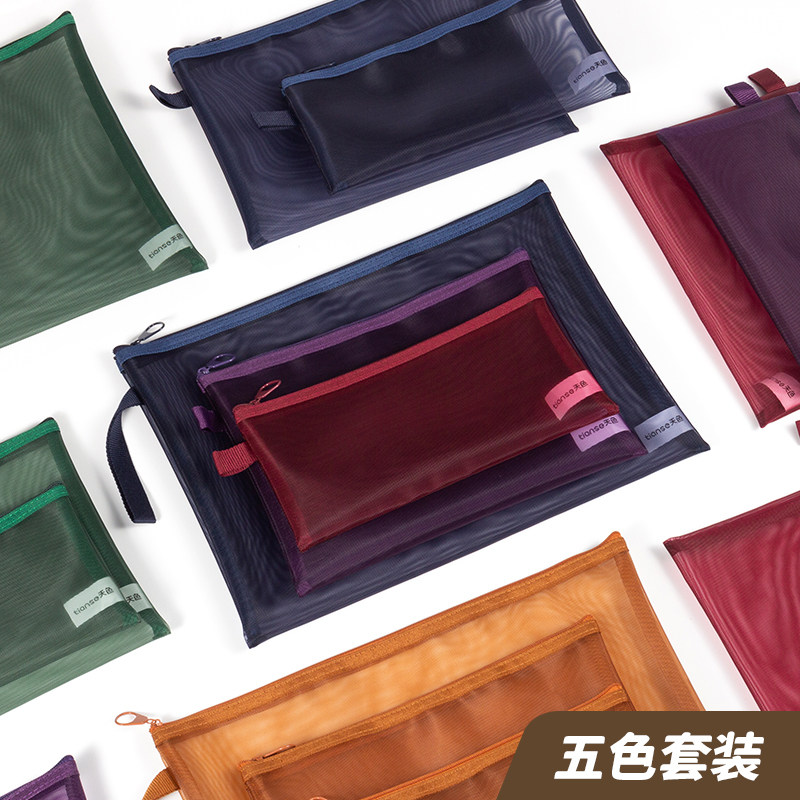天色 透明网纱袋文件袋复古色系A4 A5 B6资料文具大容量收纳学生拉链考试试卷收纳袋票据袋病例本证件整理袋