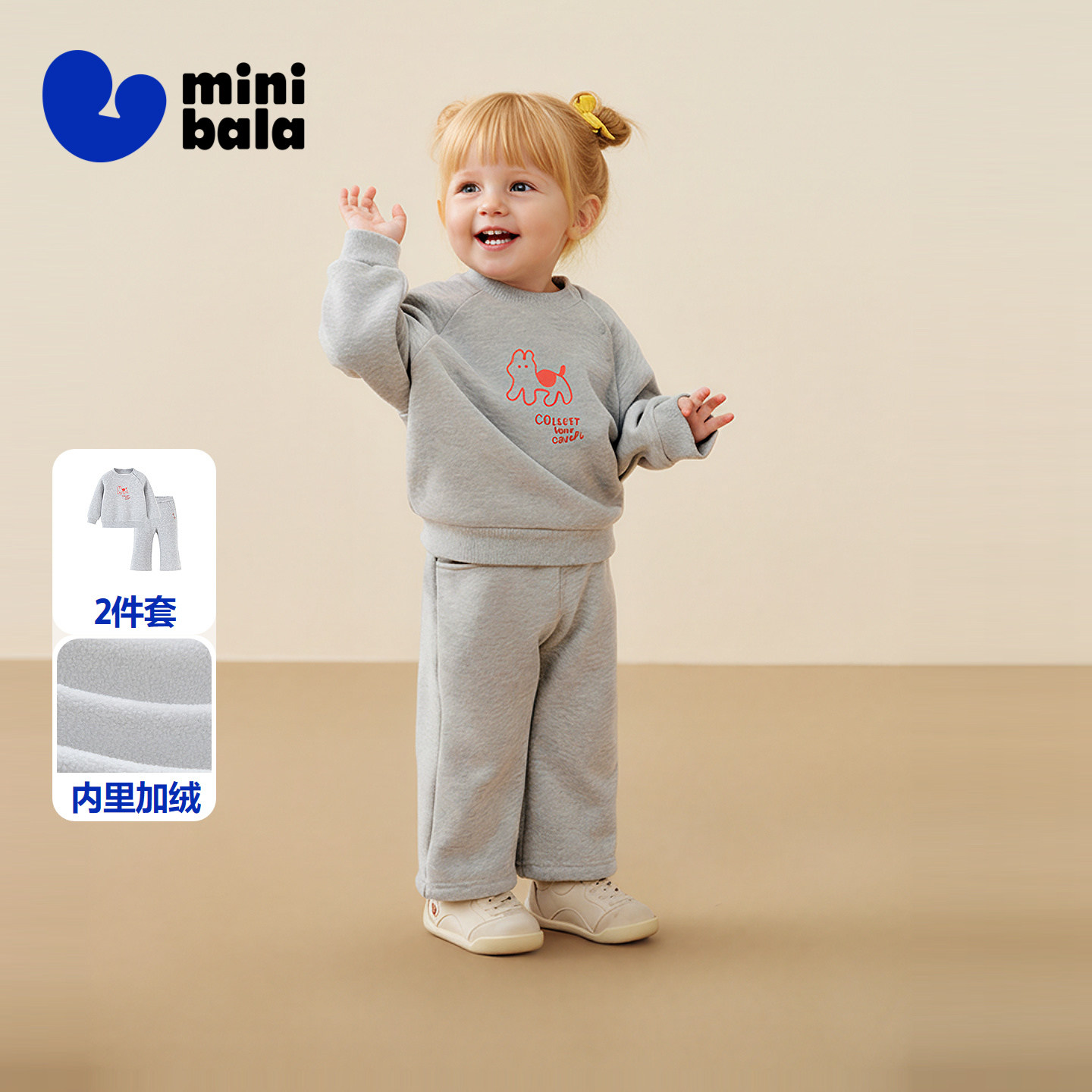 【加绒】迷你巴拉女童长袖套装宝宝棉弹长袖卫衣长裤2025冬新款