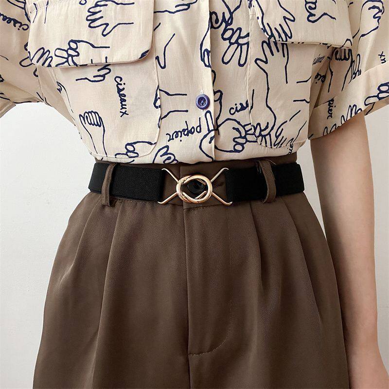 方便对扣腰带女装饰腰封配裙子复古松紧弹力宽皮带百搭简单束腰女