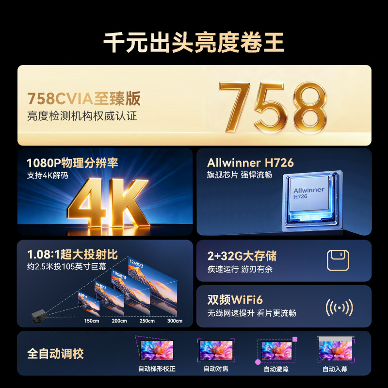 【政府补贴15%+758CVIA高亮度】小湃投影仪H8家用1080P高清智能便携家庭影院可连手机游戏卧室宿舍客厅投影机