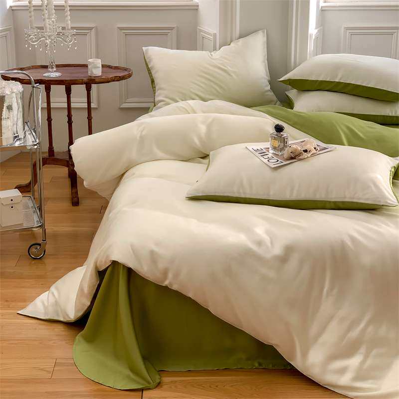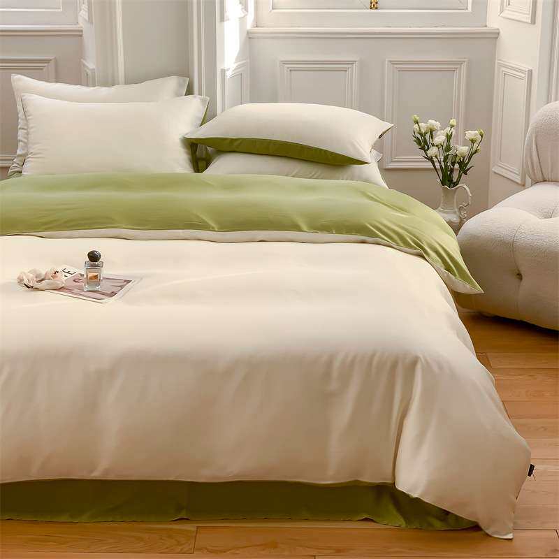 屿川丨60支兰精天丝四件套双拼纯色简约丝滑裸睡家用床品套件夏季