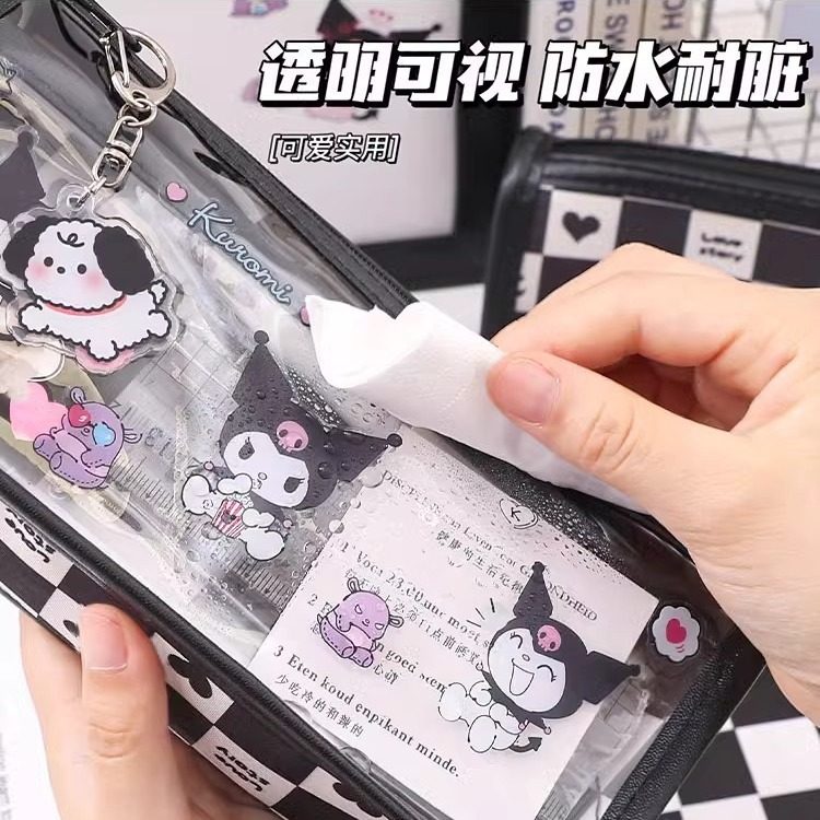 可爱库洛米笔袋透明大容量ins风桌面整理收纳袋文具盒人气款