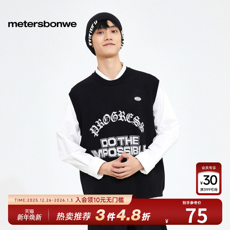 美特斯邦威马甲男春季时尚圆领休闲舒适针织背心字母印花潮流上衣