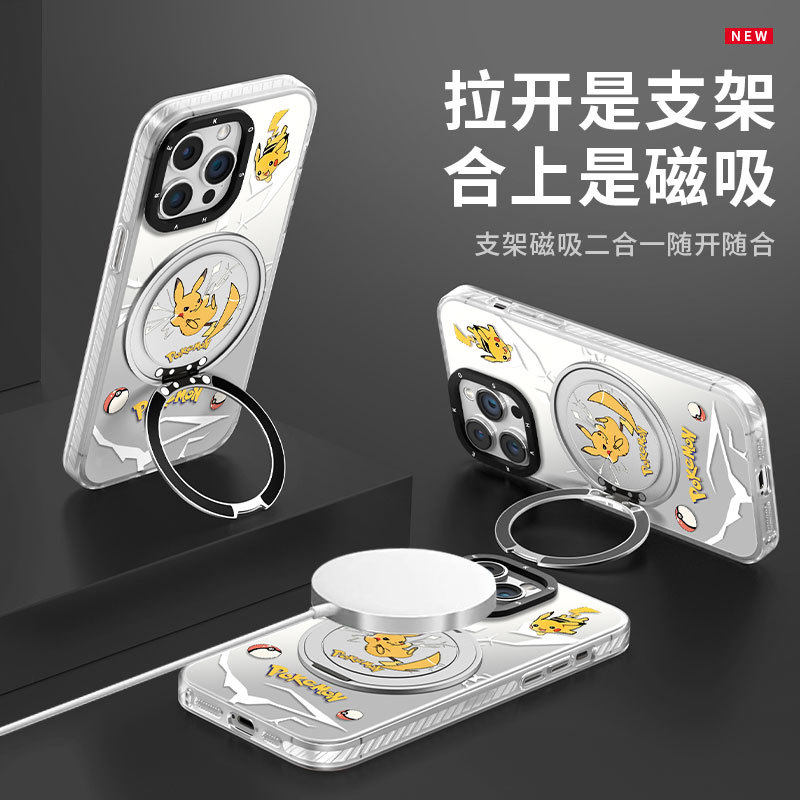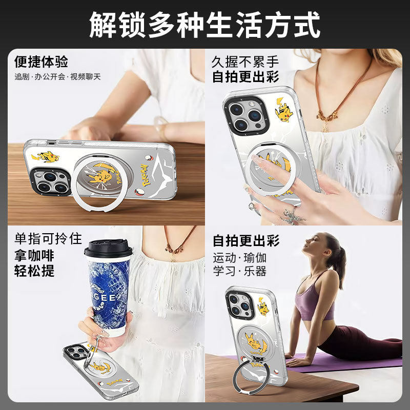 可爱皮卡丘磁吸旋转支架高级感适用苹果16promax手机壳iPhone15plus保护套2025新款14卡通13IMD12创意11小众
