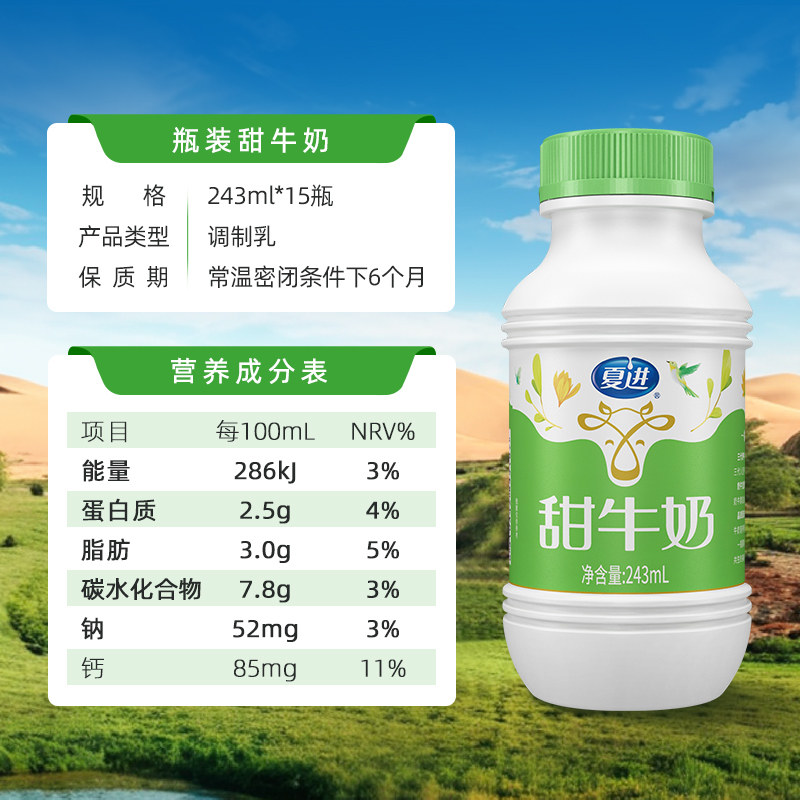 夏进甜牛奶整箱243ml*15瓶装调制乳好喝美味