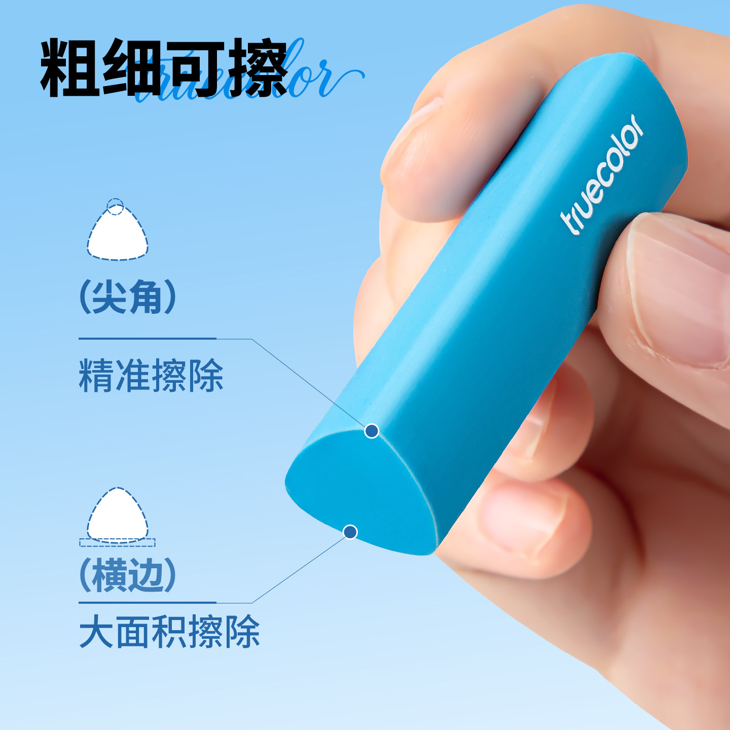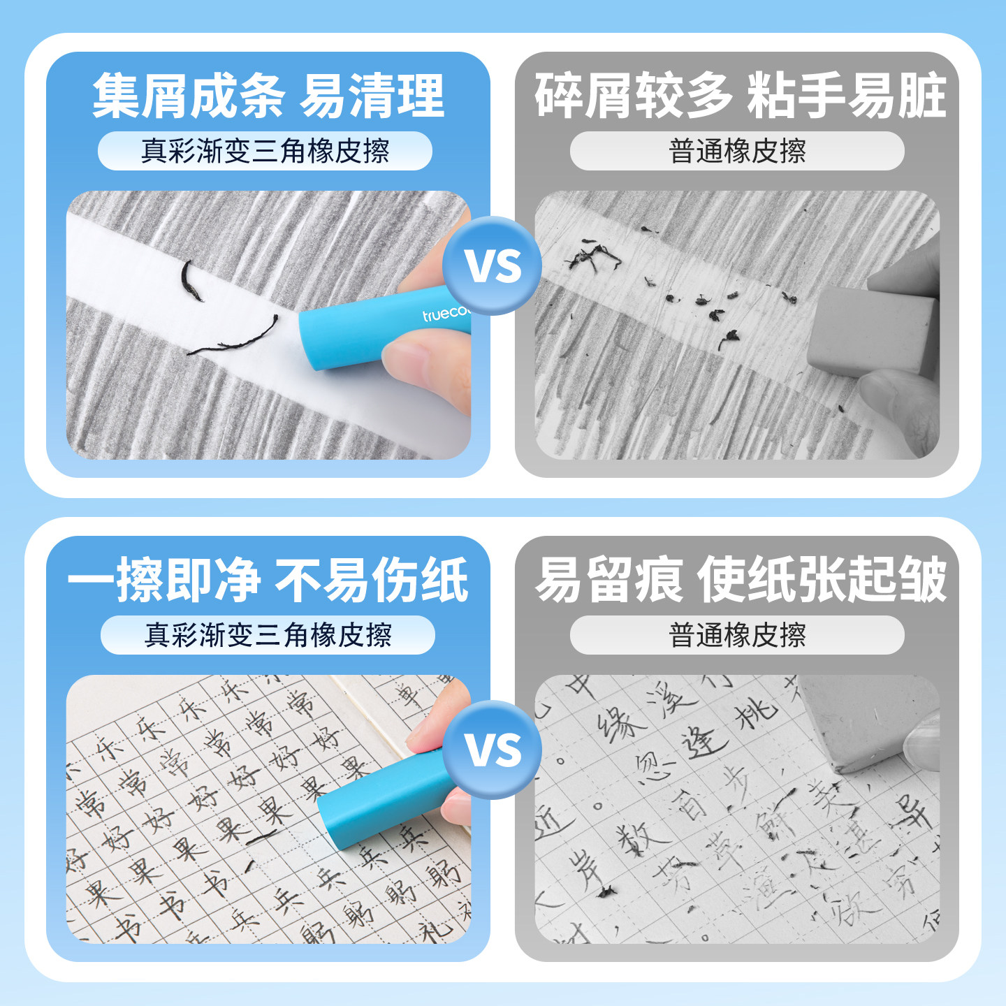 真彩三角橡皮擦真集屑小学生专用铅笔橡皮檫无屑超干净不留痕拉丝防丢儿童幼儿园无毒2b考试素描像皮擦字成线