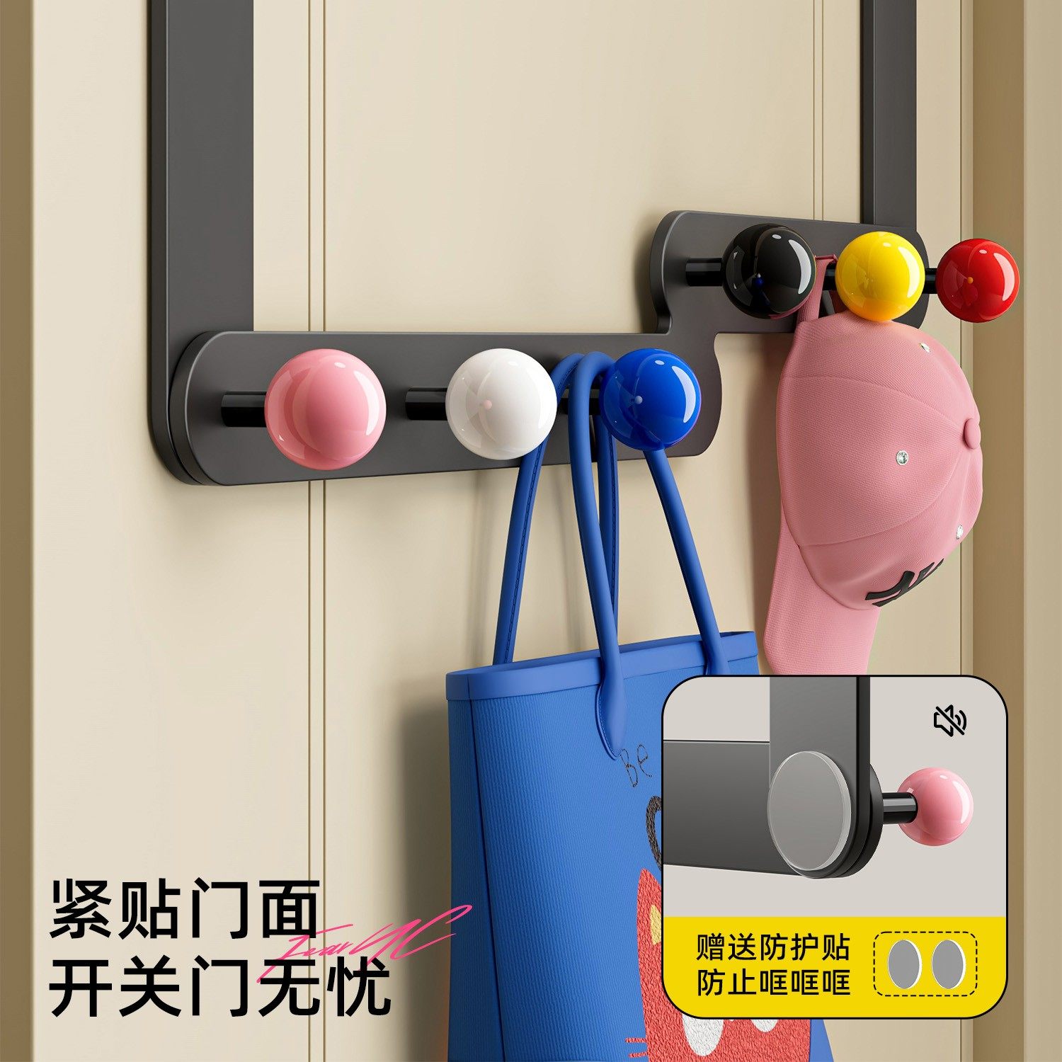 多巴胺门后挂衣架挂钩免打孔壁挂式挂衣钩入户玄关钥匙包包衣服