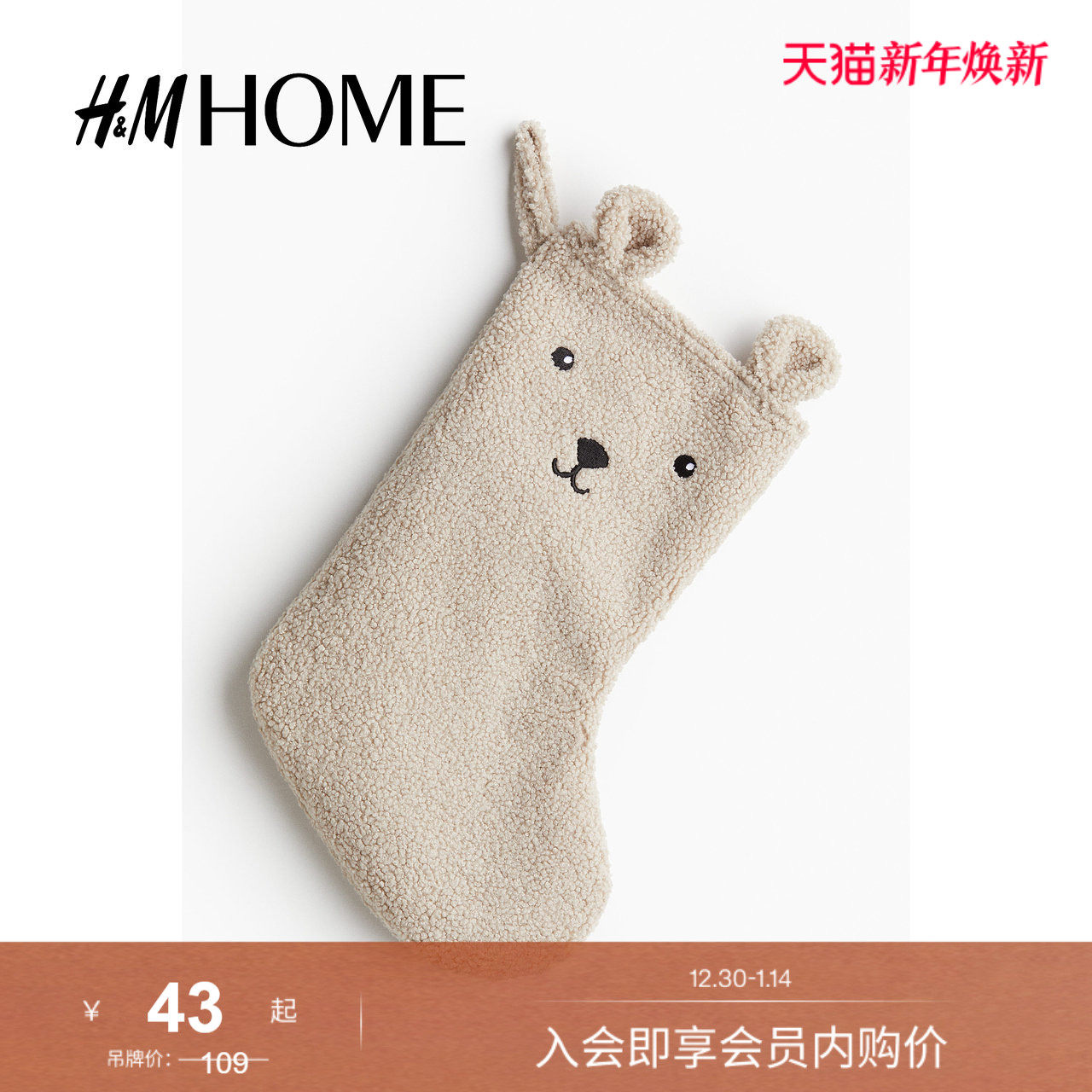 HM HOME居家布艺装饰配件冬季室内氛围感泰迪绒袜子1243441