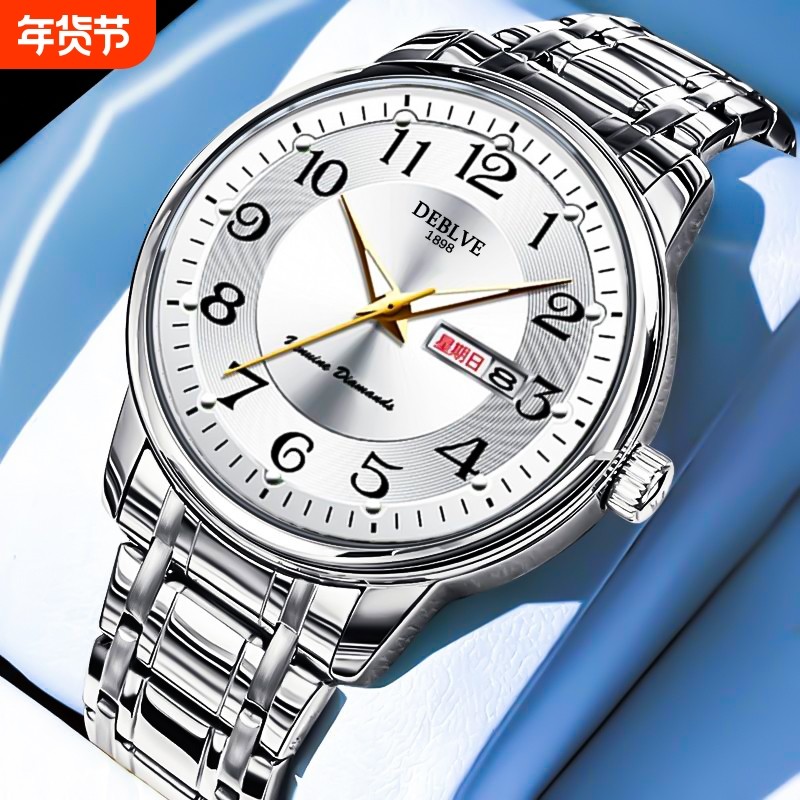 手表防水简男士机械双日历全自动显示普通艺术石英新款精钢数字