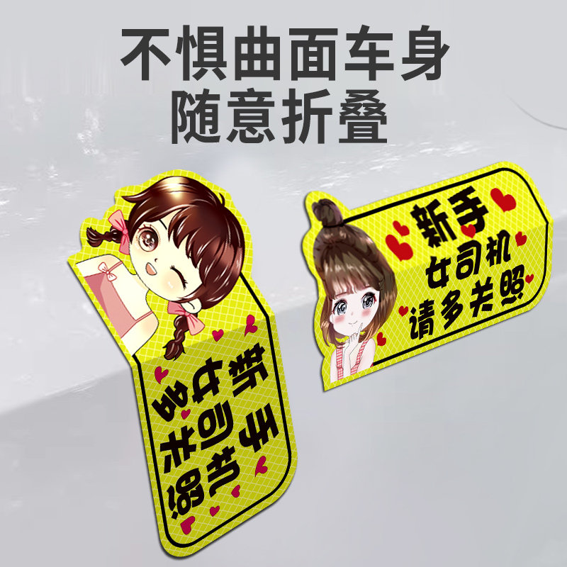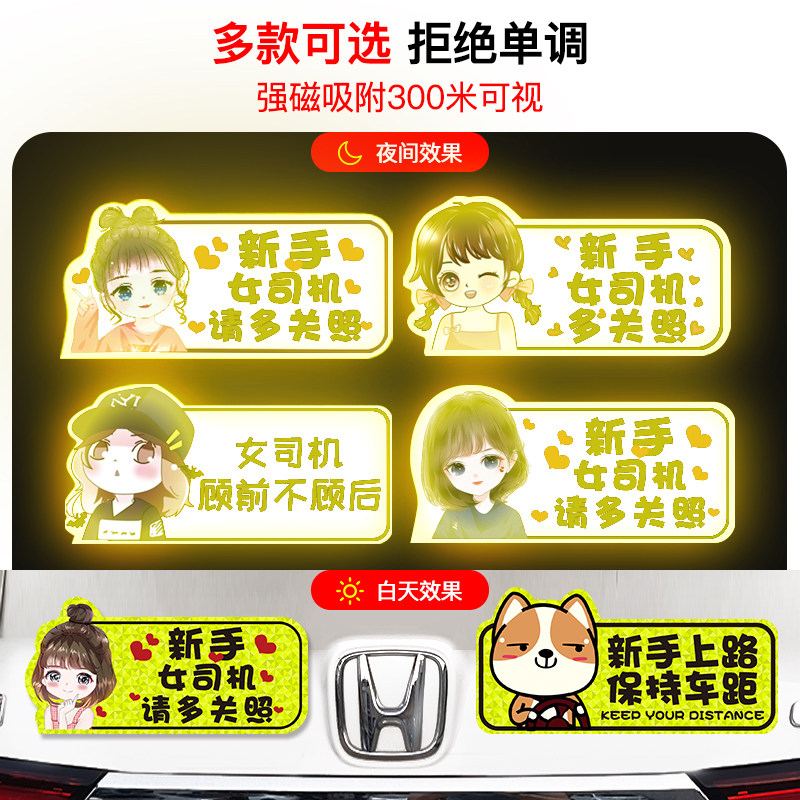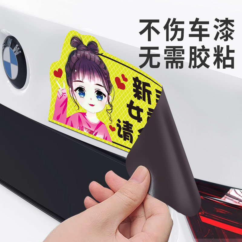 实习磁性车贴新手上路女司机磁吸贴汽车反光贴纸装饰创意搞笑标志