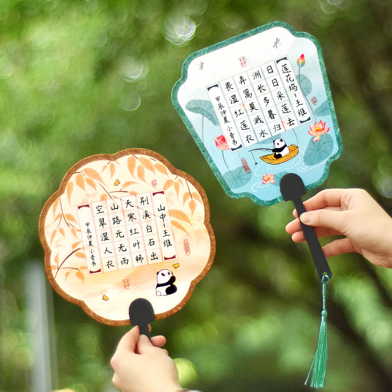 可爱卡通熊猫团扇荷花竹子手持扇子田字格硬笔书法作品展示纸扇汉服拍照氛围感中国风夏日随身便携实用手摇扇