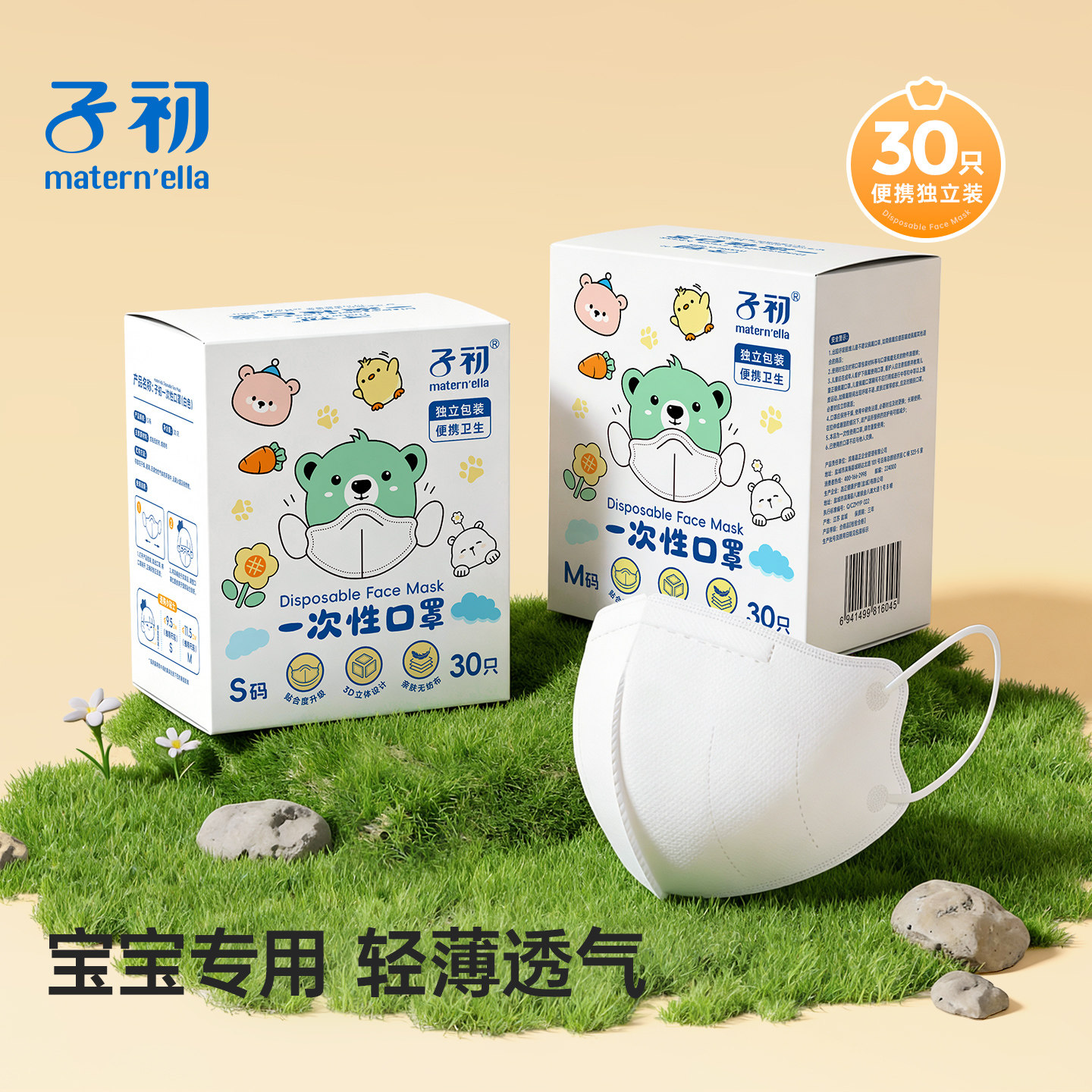 子初儿童口罩四季3D立体口罩舒适不勒耳朵婴童宝宝用非国标30片
