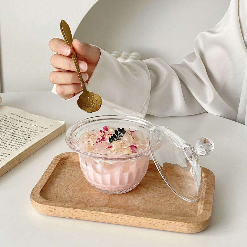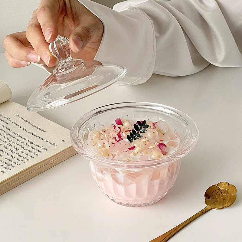 带盖玻璃甜品碗家用女生精致高级感透明冰粉点心碗银耳糖水燕窝盅