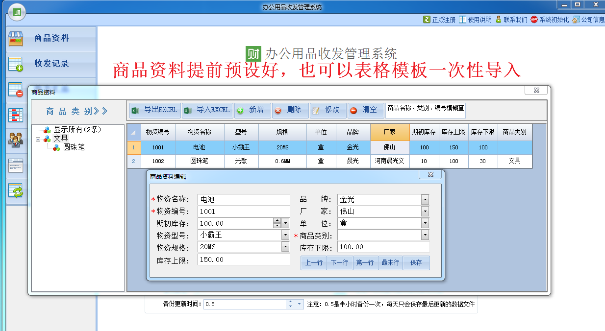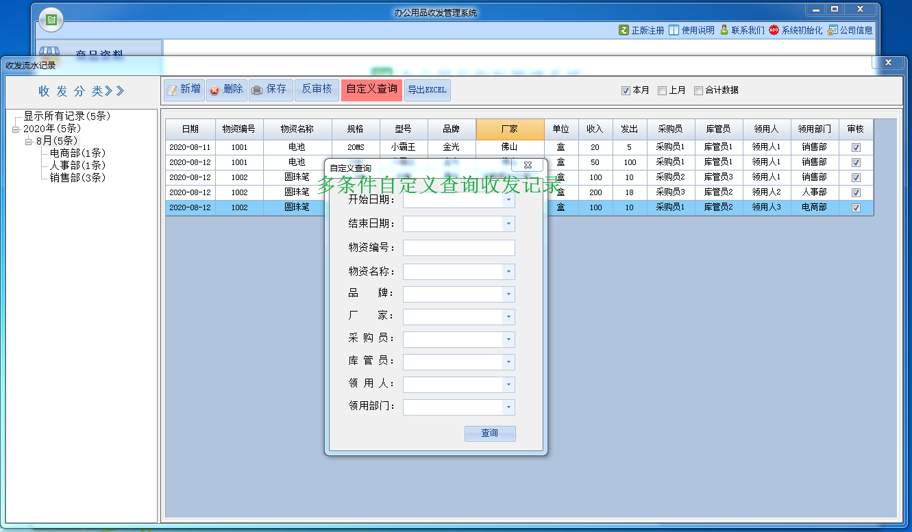 办公用品领用收发存库存管理台实物流水明细账出入账进销存软件