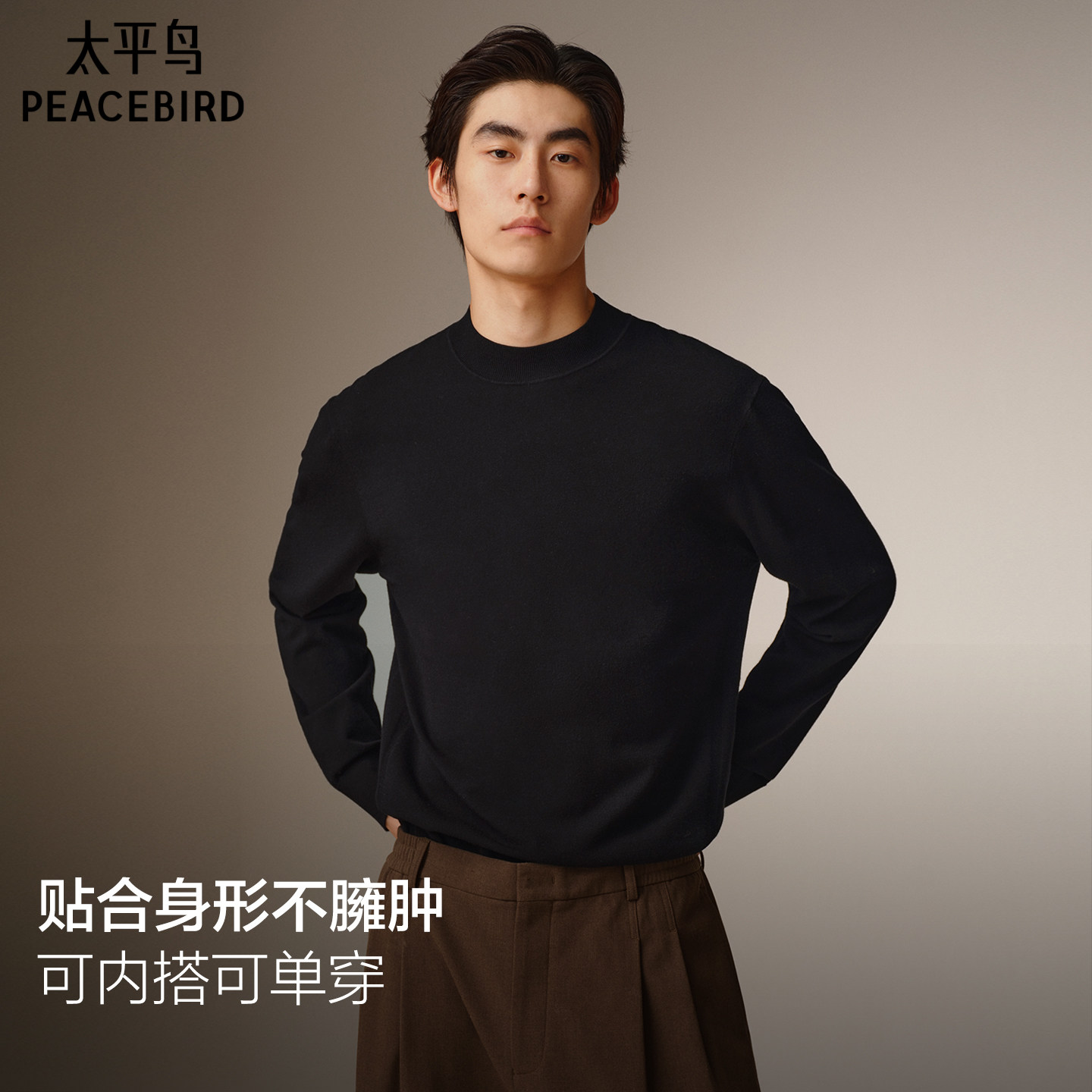 森马毛衫男冬季含羊绒针织衫发热抑菌2025新款基础圆领黑色打底衫