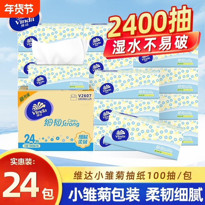 维达抽纸细韧面巾纸100抽*24包整箱家用纸巾实惠装软包纸抽餐巾纸