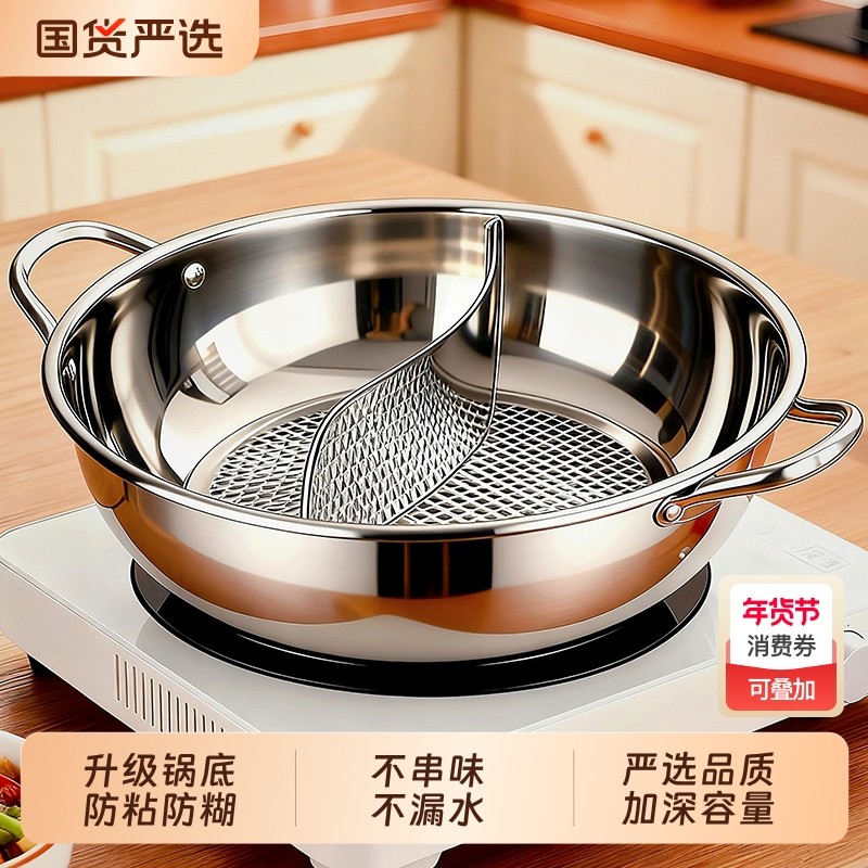 不锈钢鸳鸯锅电磁炉专用家用火锅锅具单锅火锅盆2025年新款清汤锅