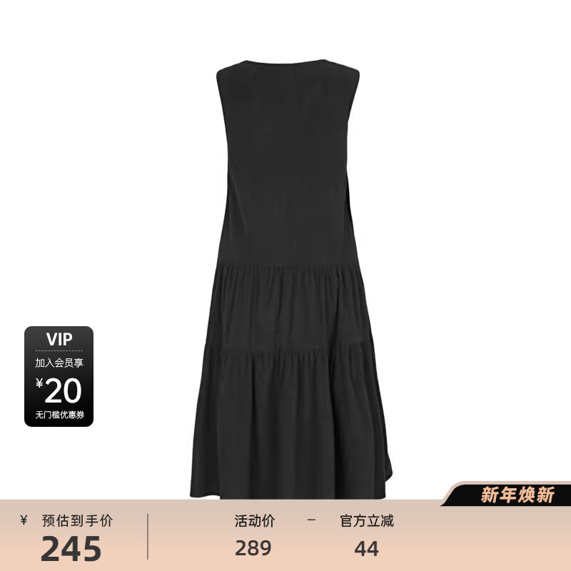 sdeer圣迪奥女装复古圆领盘扣碎褶无袖连衣裙S244Z1204